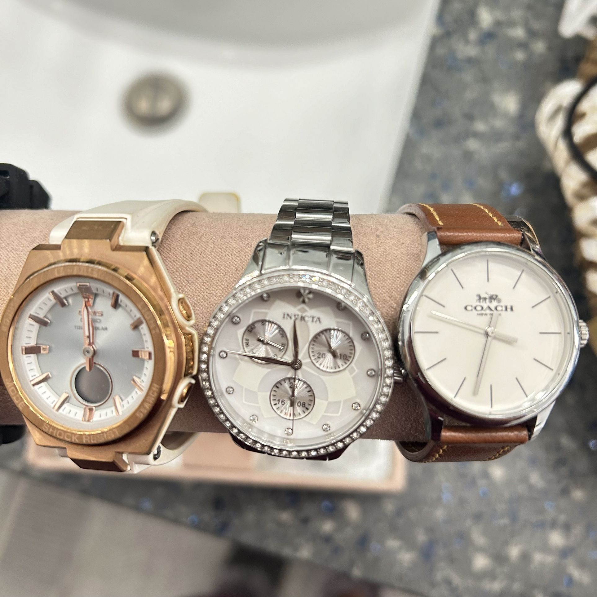 G-SHOCK WHITE-$30 DISNEY COACH BROWN-$20 BLACK COACH $50 NEW BUT NO BOX -SOLD BROWN COACH-$ 40 -SOLD INVICTA WHITE GOLD WITH DIAMONDS ITS SLIGHTLY USED $60 IN ADELANTO PICK UP ONLY