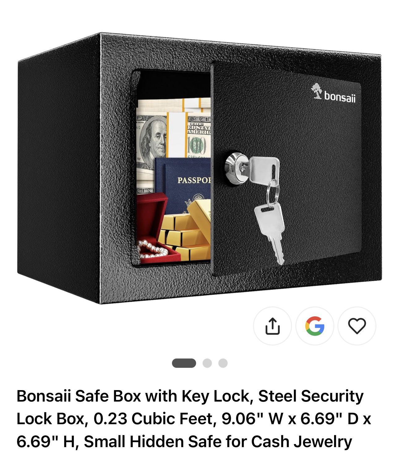 Bonsaii Safe Box with Key Lock, Steel Security Lock Box, 0.23 Cubic Feet, 9.06" W × 6.69" D x 6.69" H, Small Hidden Safe for Cash Jewelry