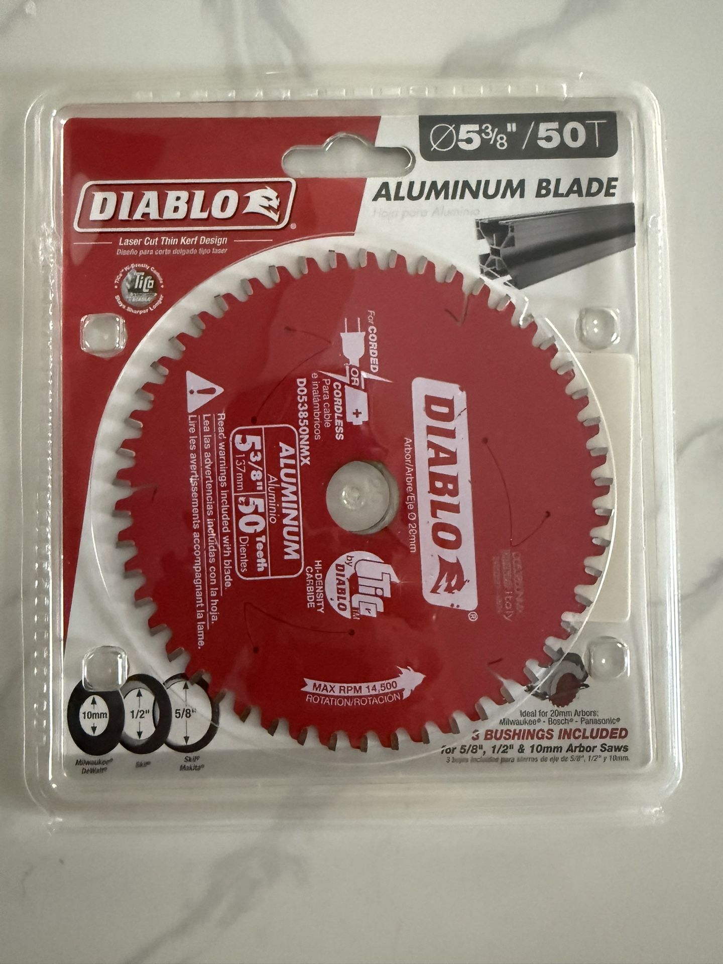 Diablo 5-3/8” 50-Tooth Aluminum Cutting Saw Blade (Model D053850NMX) Brand new never used