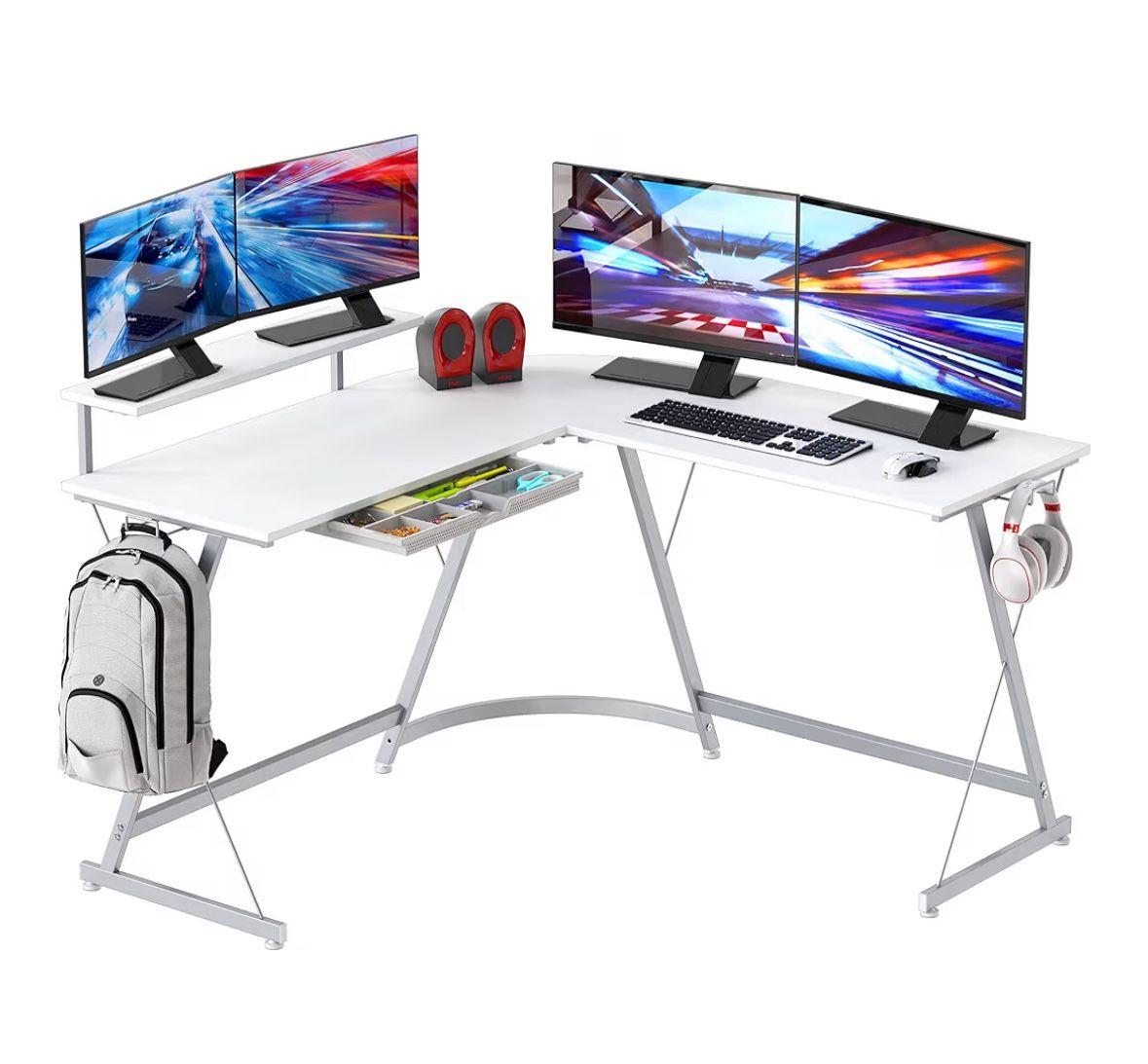 - 51” x 51” L-shaped desk - white