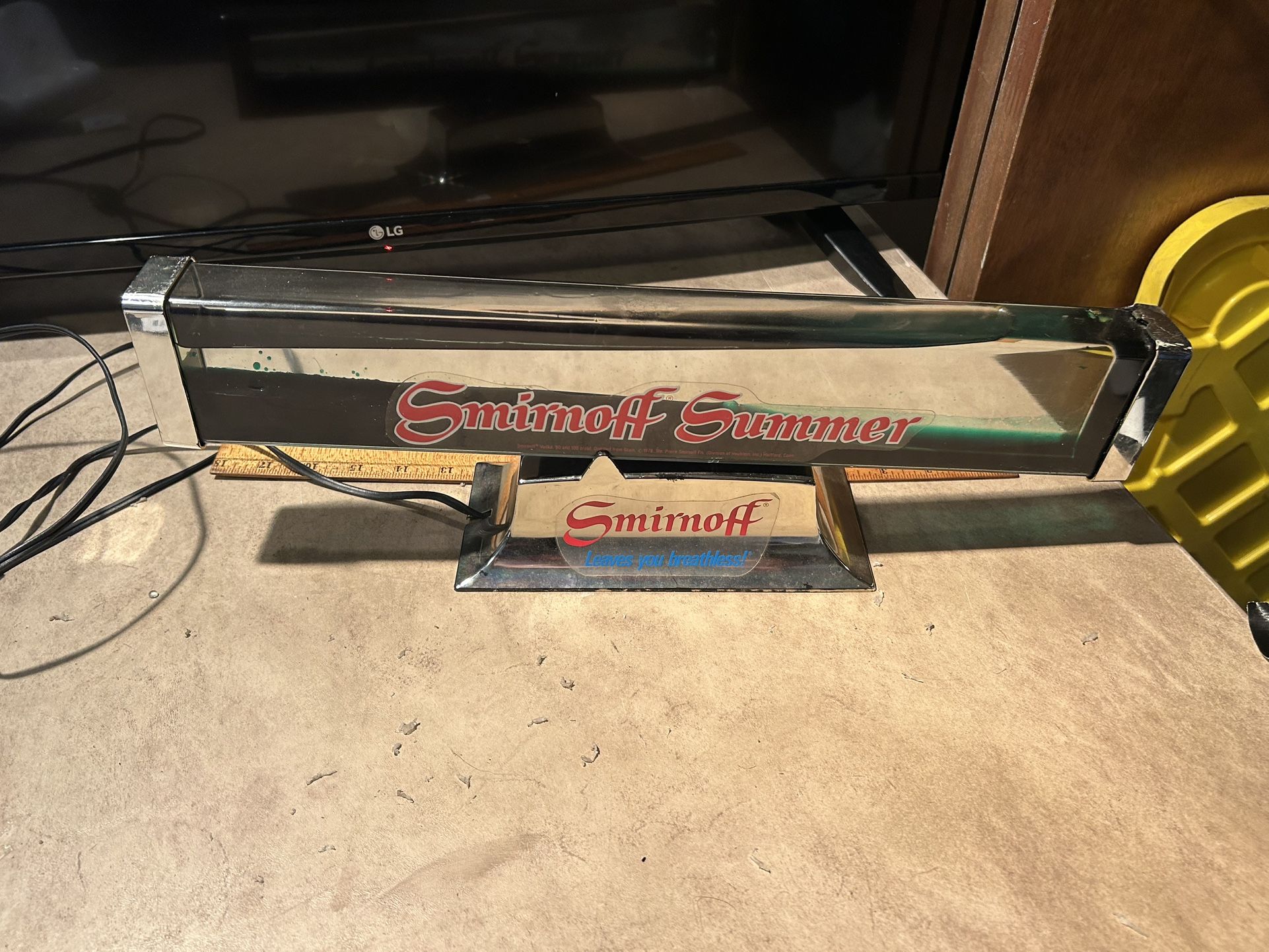 Smirnoff vintage wave machine, advertising piece in good working order Send a green wave back-and-forth about every 10 seconds. These are pretty rare and this one’s in decent shape although there are a couple small chips on the wave tank edge but it’s nothing you can see unless you really look for them, especially from the front. $100, cash or Venmo, meet in person somewhere convenient. Thanks for looking
