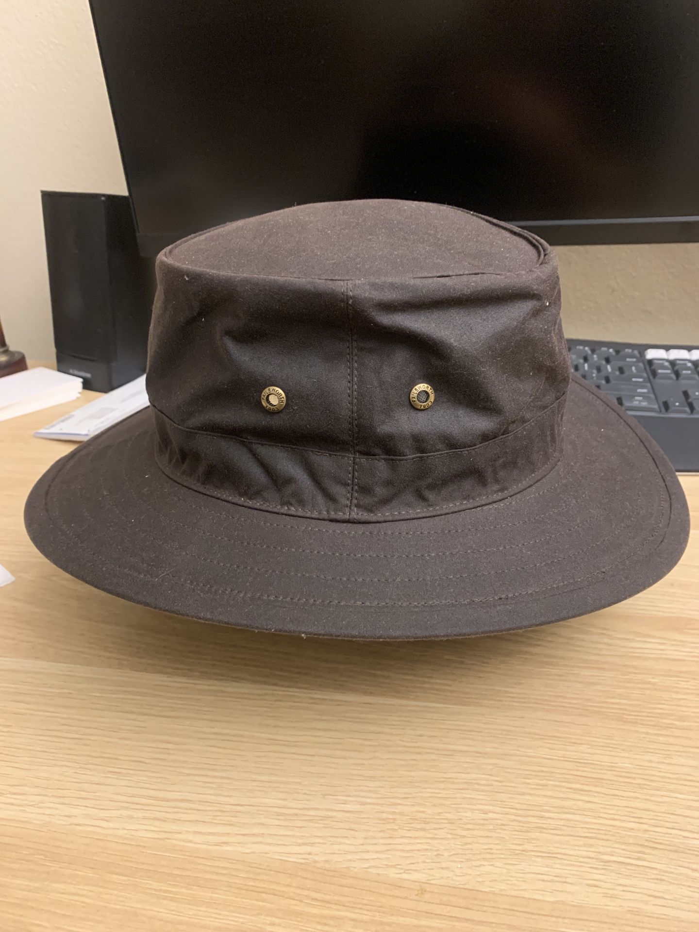 New with tags. Tried on once, doesn’t fit my style. Color is dark brown. Size is XL ( 61cm / 7.5)