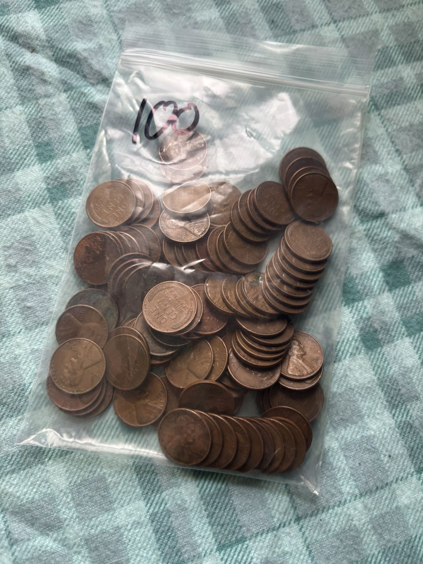100 loose mixed date wheat cents. Two bags available, for a total of 200 wheat cents. Willing to make a deal if you buy both.