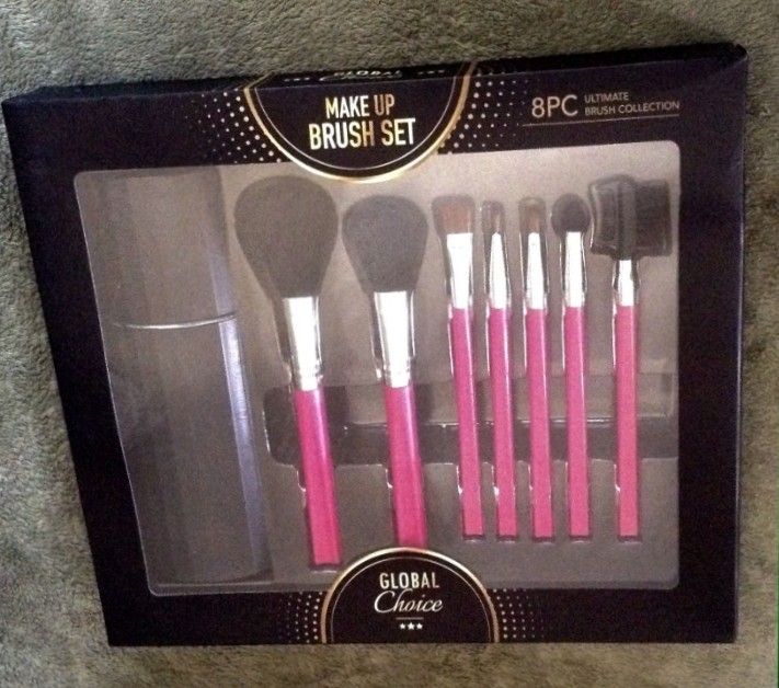 Pink 8 piece ultimate brush set, includes travel case. Cosmetics gift set New in box