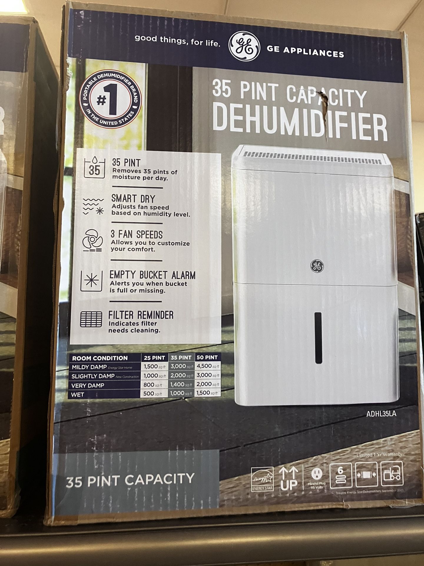 The GE 25 pint energy star, portable dehumidifier efficiently removes excess moisture to create a healthier more comfortable environment in damn spaces. Designed was smart, dry technology, it automatically adjust settings to maintain optimal humidity. Protecting your home for mold and mildew. It’s portable design and energy efficient performance makes it easy to use wherever you need it, helping you to save on energy cost while improving air quality, ideal for basements, bedrooms, and other moisture prone areas. This item is located at Prescott Valley Liquidators 6669 E. 1st St., Prescott Valley, Arizona Monday through Saturday 10 AM to 7 PM Sunday 11 AM to 5 PM