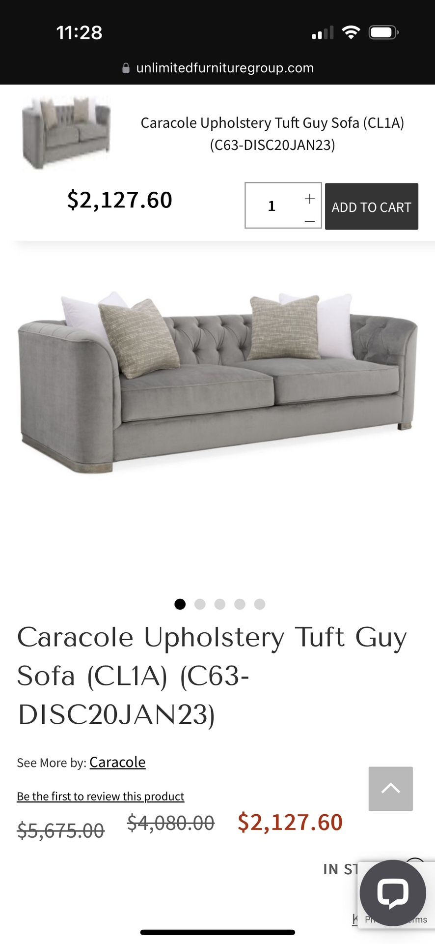 These Caracole brand couches are practically new. Barely sat on as we sit in the other room in our home. Dimension info is in the picture. These couches sit beautifully and are very comfortable and deep. The Gray just does not sit well in my home. Sad to see them go! I paid over $6k all together. They are ON SALE for $3,265 each right now. Comes with the 8 pillows as well if you want them. The white pillows do attract a lot of lint even with minimal use.