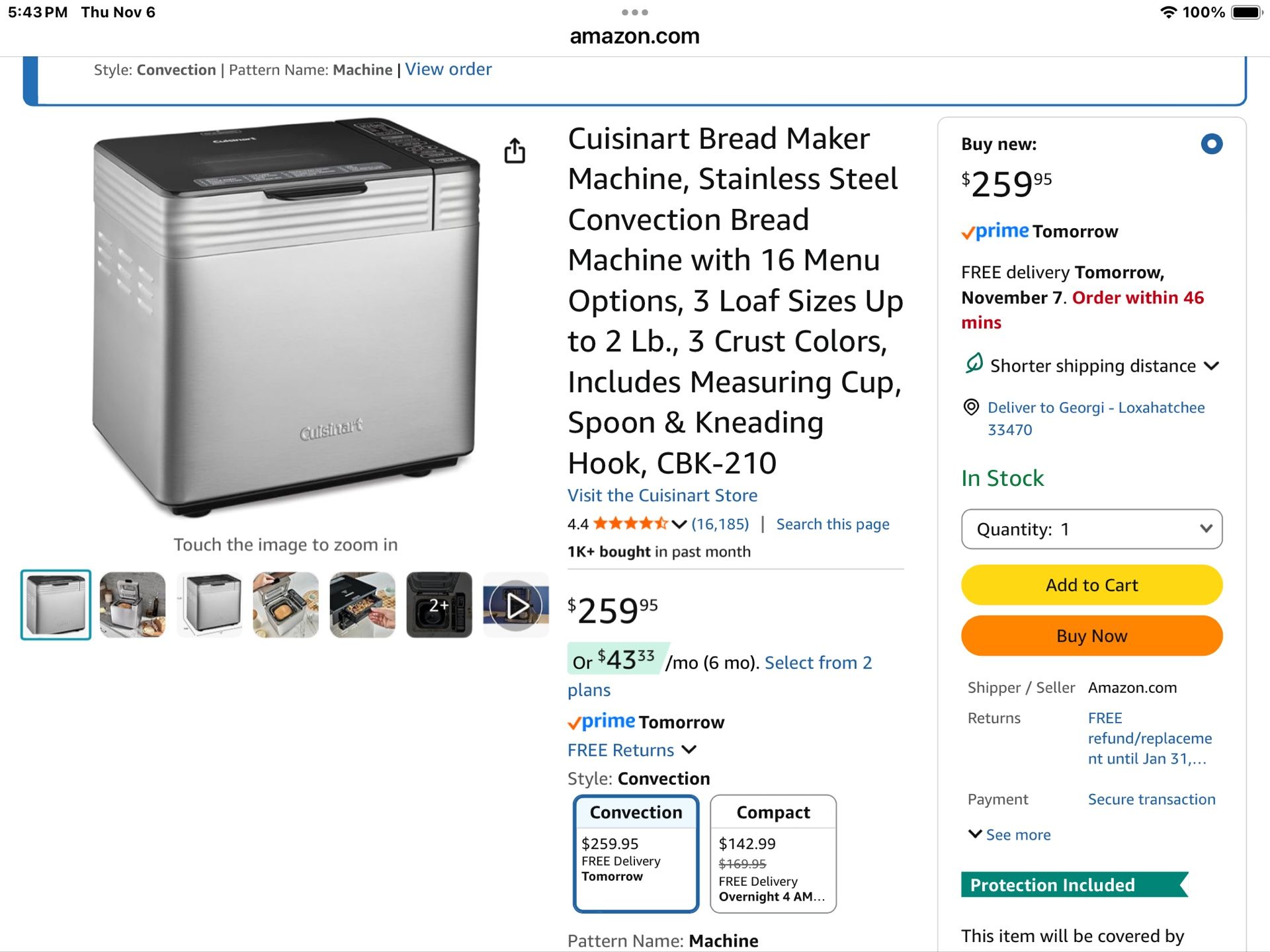 Cuisinart Bread Maker Machine, Stainless Steel Convection Bread Machine with 16 Menu Options