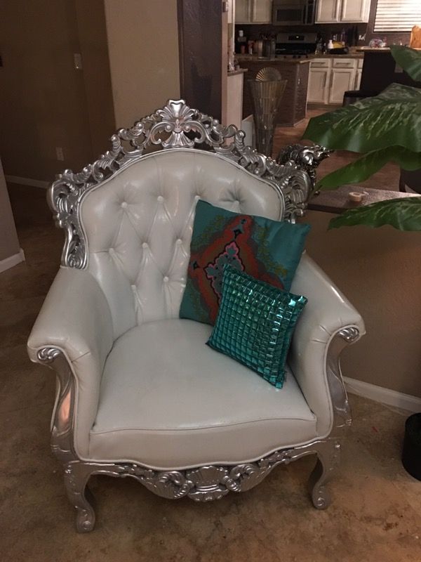 2 Gorgeous white and silver baroque wood. Tufted leather Hollywood Regency style have couches that match and benches. 900 each