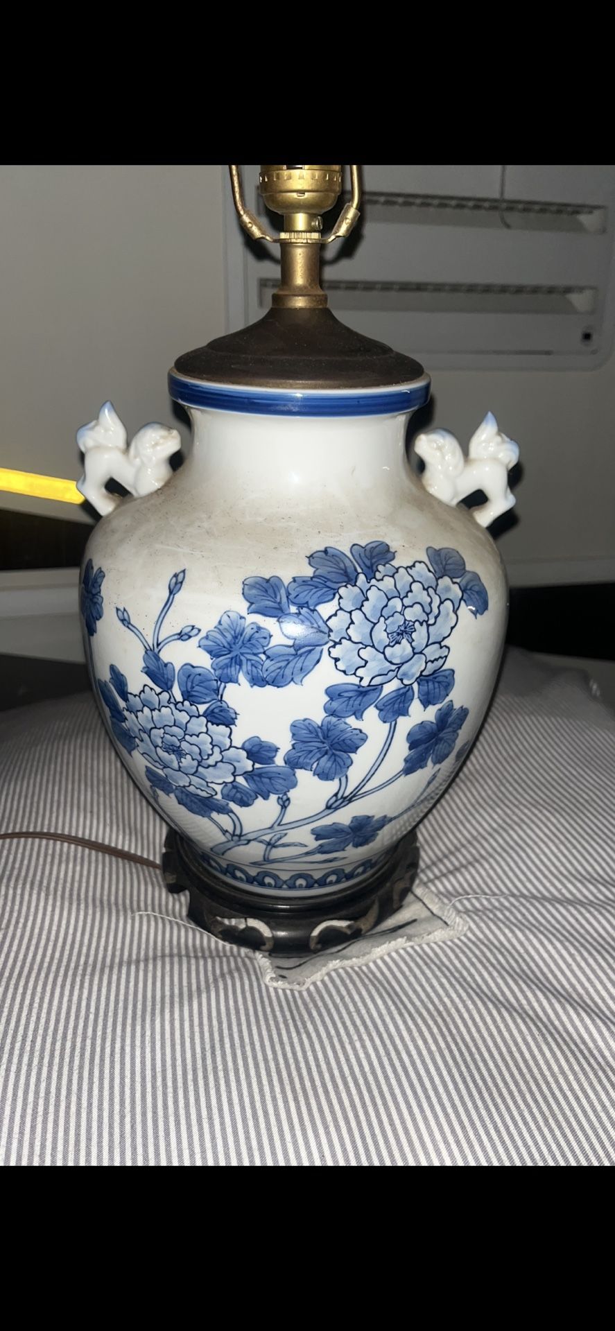 2 ASIAN BEAUTIFUL BLUE N WHITE FOODOG SCULPTURED ANTIQUE LAMPS… RARE FIND! HAND PAINTED, PORCELAIN!!! $200 for the PAIR… great deal compared to other listings as I show in pics…
