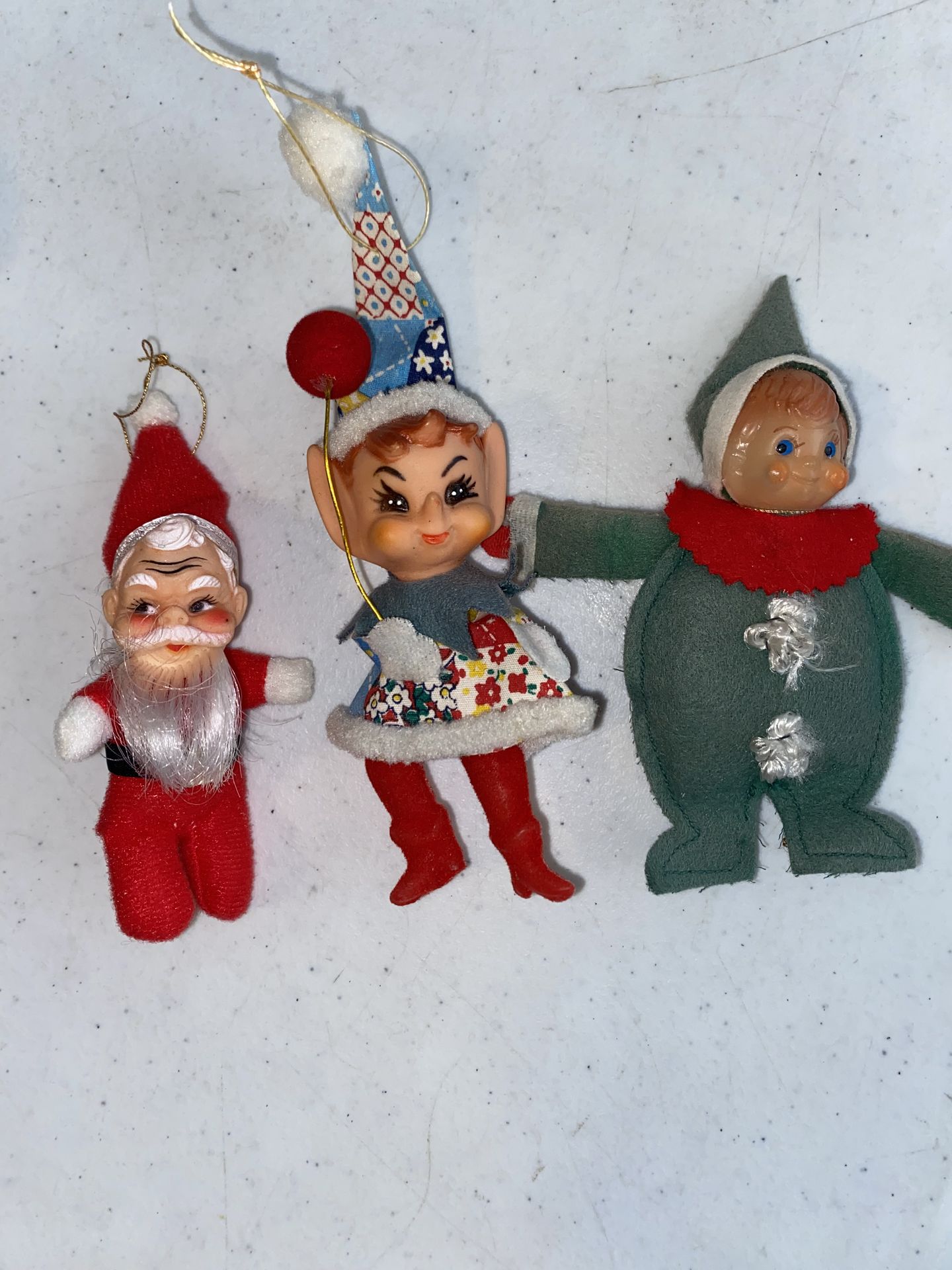 3 MCM Santa girl Elf Pixie Rubber Face Balloon Small Ornaments mix lot