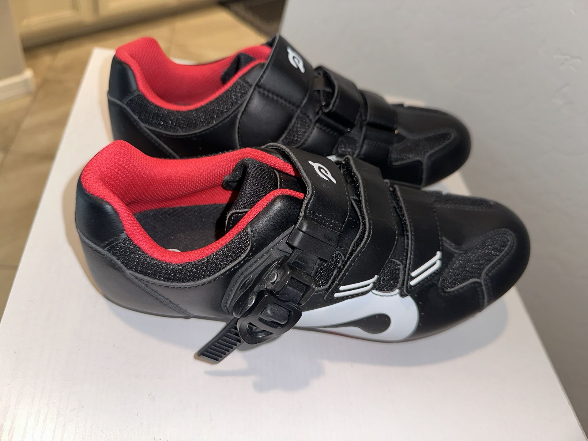 Brand new cycling shoes. Clipped them onto bike once and decided the peloton was not for me. Haha