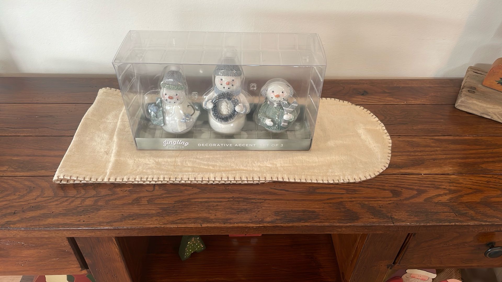 New in packaging set of three snowmen with mint green and blue accents. Pick up. In 19804 near Movies 10 in Stanton, Delaware.