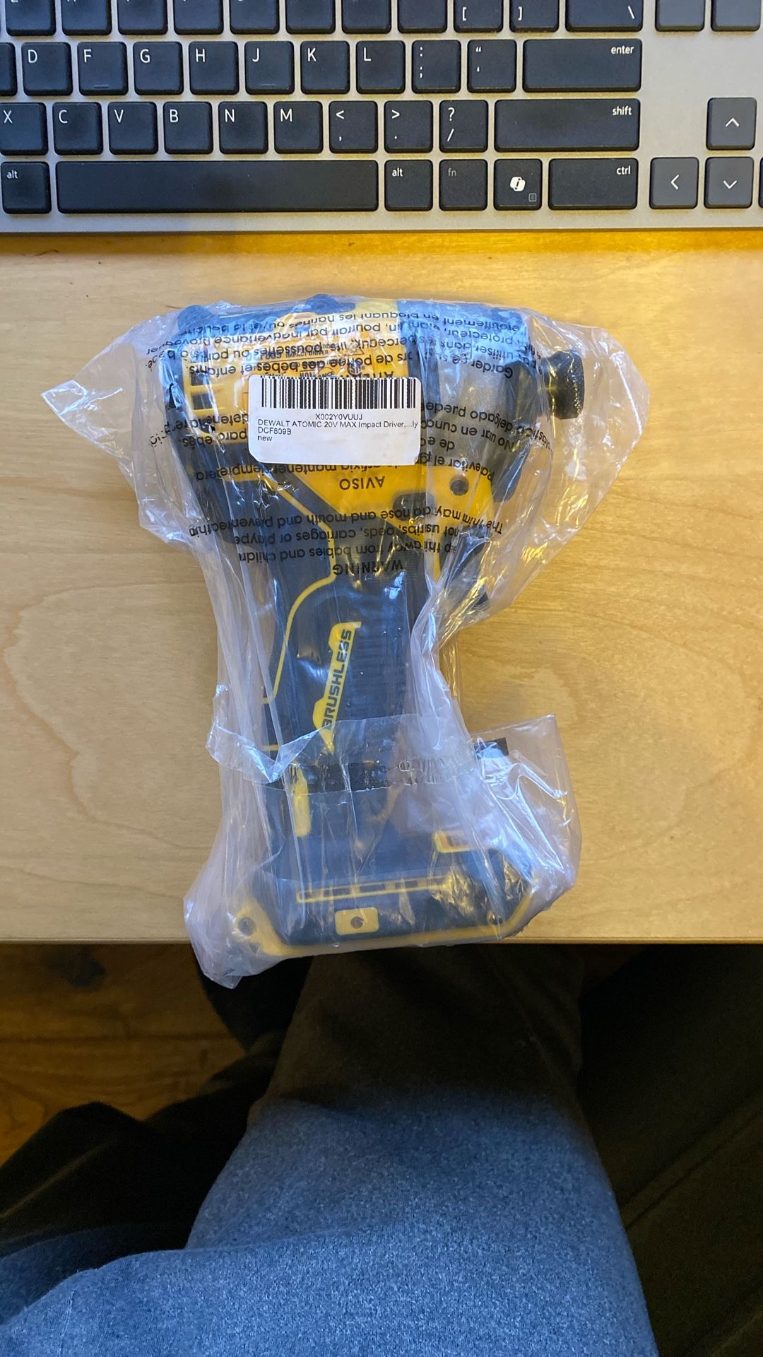 “New” from Amazon, got one as a gift so don’t need this one. Tool only (no battery) but happy to let you open the plastic and test with one of my batteries if you commit to purchasing.