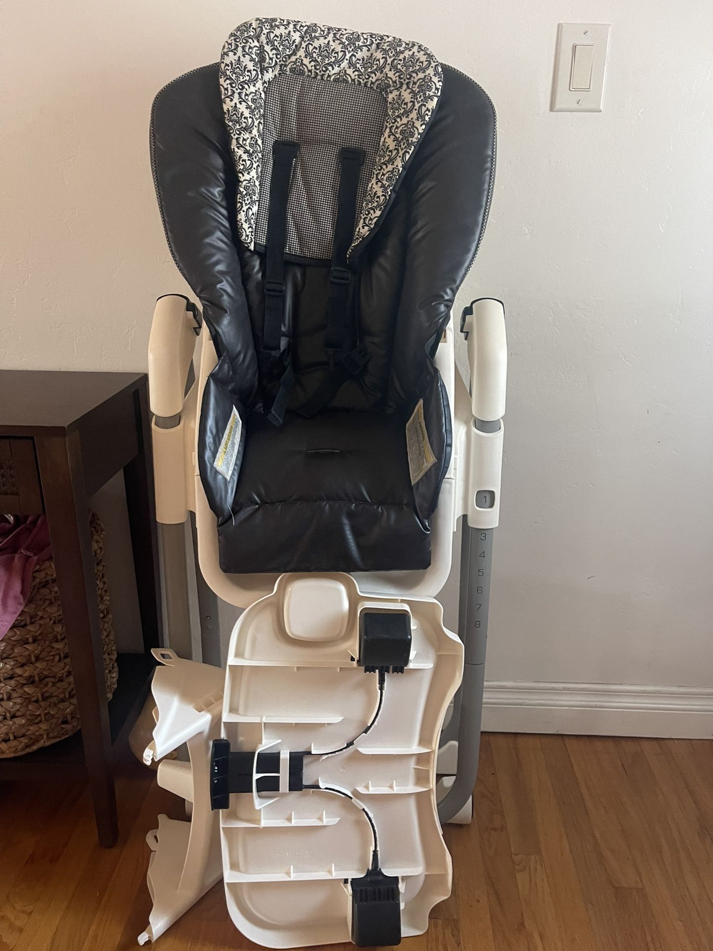 Selling used Graco high chair. There’s something loose where you attach the small tray into the high chair, but it doesn’t affect the function. See pictures. Asking $60 obo