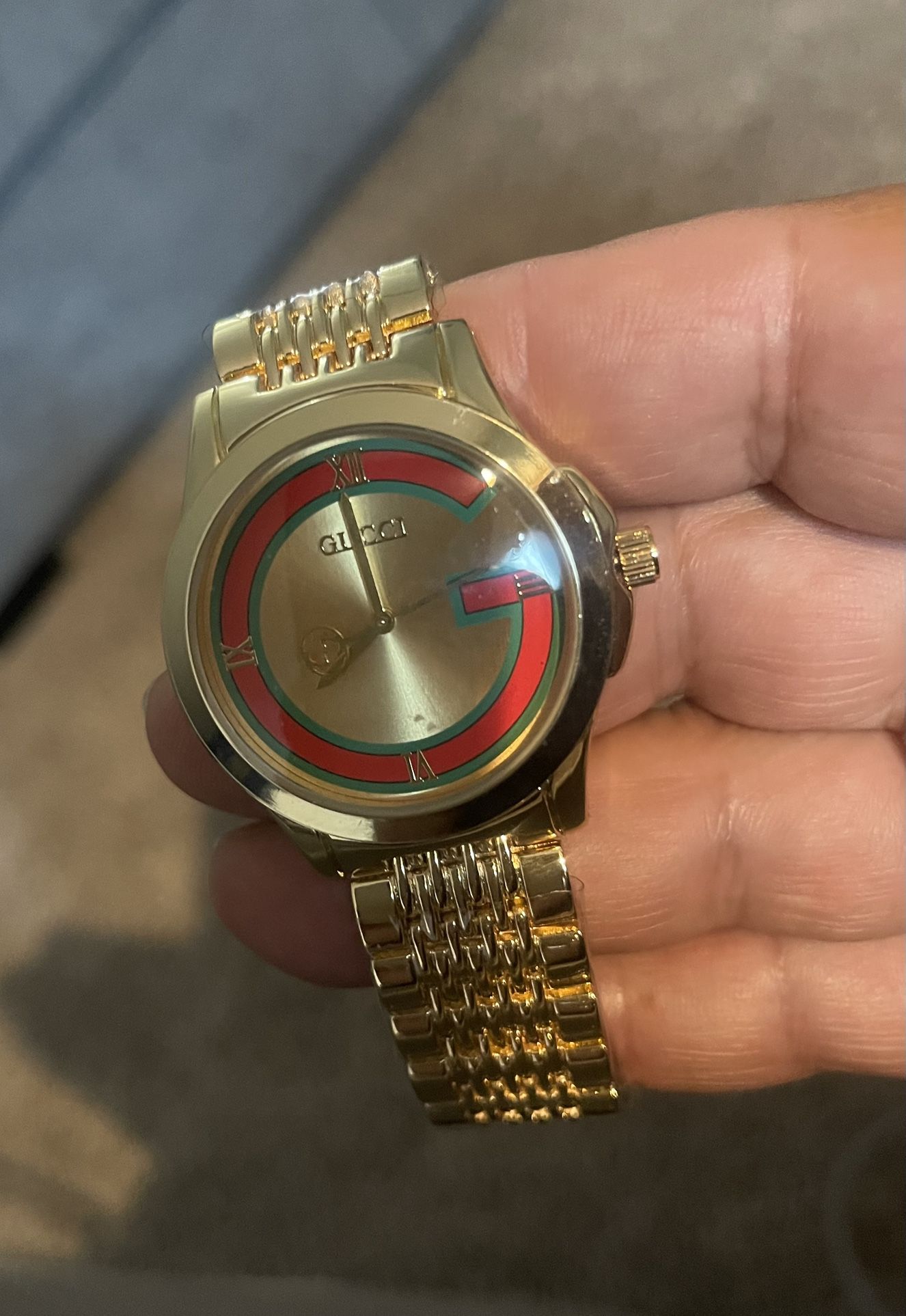 Gold and red designer watch