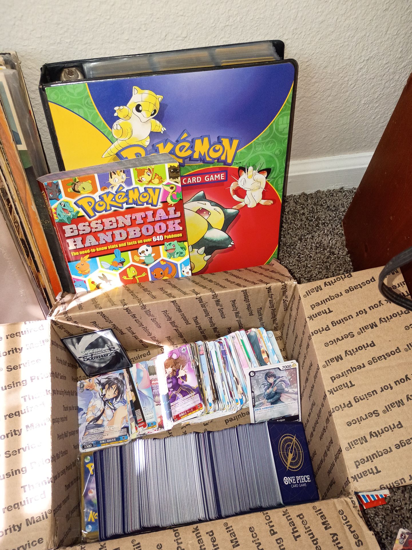 From first edition Pokemon cards, to fossil, jungle, Neo, Team Rocket and more!!! Comes with everything shown. I honestly don't know anything about One piece and the other Japanese anime stuff. So just throwing those in for free. I didn't scan 200 plus Pokemon cards including the Japanese stuff. So what you see is what you're getting :) Free One Piece, free 200 plus vintage pokemon cards and other anime stuff. Pick up in La Crescenta near Glendale. Or we can meet up at Eagle Rock. There's only 3 holos in the lot, but after scanning only 265 cards or so, it's already past the 1250+ mark. Not in a hurry to sell. Have a great day π I can send more pictures if interested.