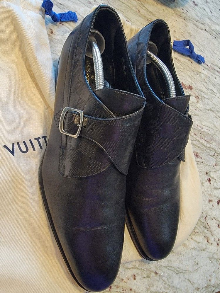 Louis Vuitton Black Leather Infini Single Monk Strap Dress Shoes