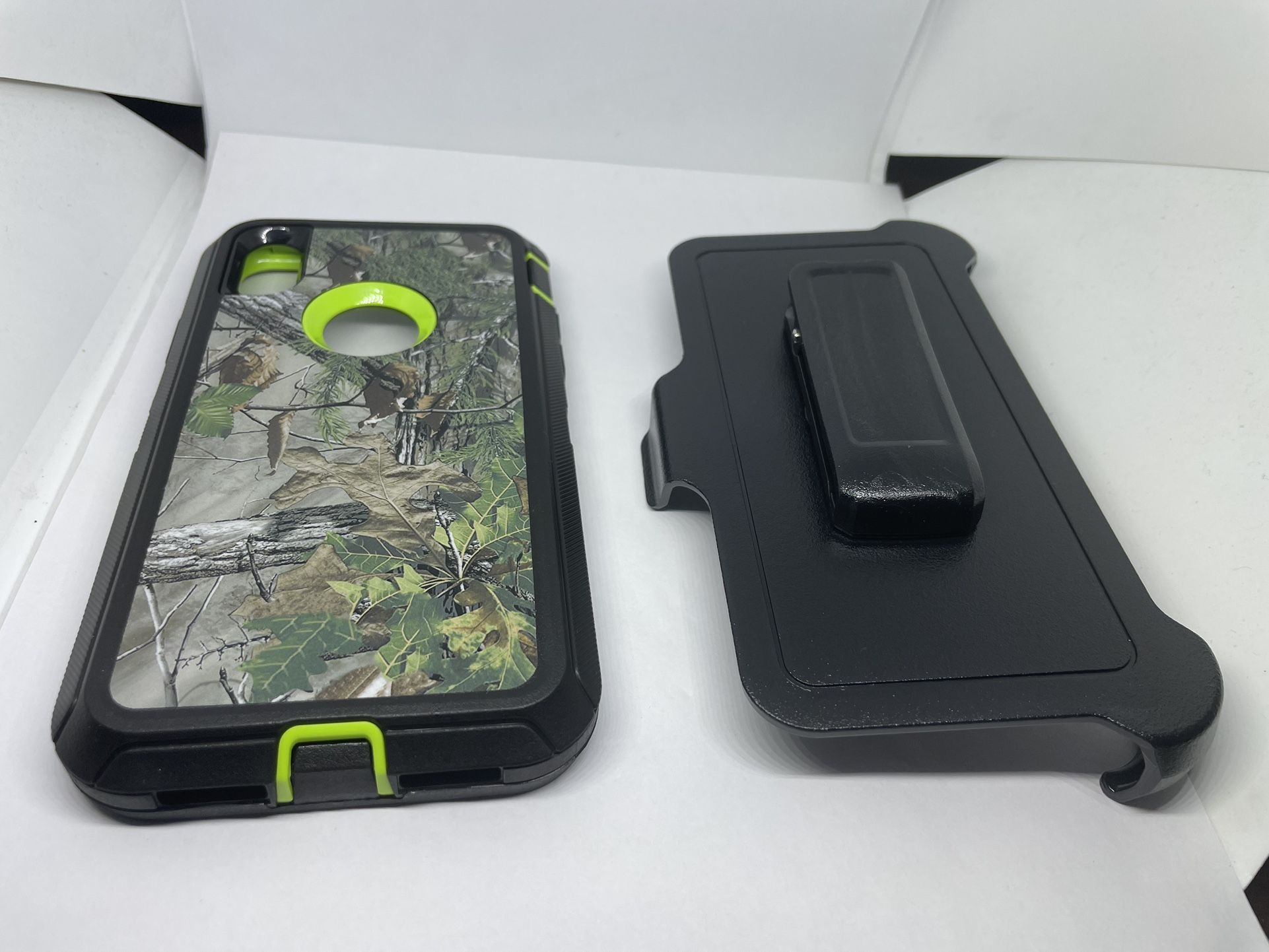 For IPhone XR belt clip case defender style cover - Color : Green tree camouflage - Condition : New and comes in retail packaging - Generic / unbranded - Shipping : via USPS first class mail . Tracking number is always provided so you may track your order anytime . - Returns and Exchanges : all items are new , however , if you don’t receive the right item . Please contact me , all items can be returned or exchange within 7 days. - Feedback : positive feedback / reviews are always welcomed and highly appreciated . - Customer service : please contact me if you have any questions. I am more than happy to help and and answer any questions you may have . Se habla Español Thank you and have an awesome day !
