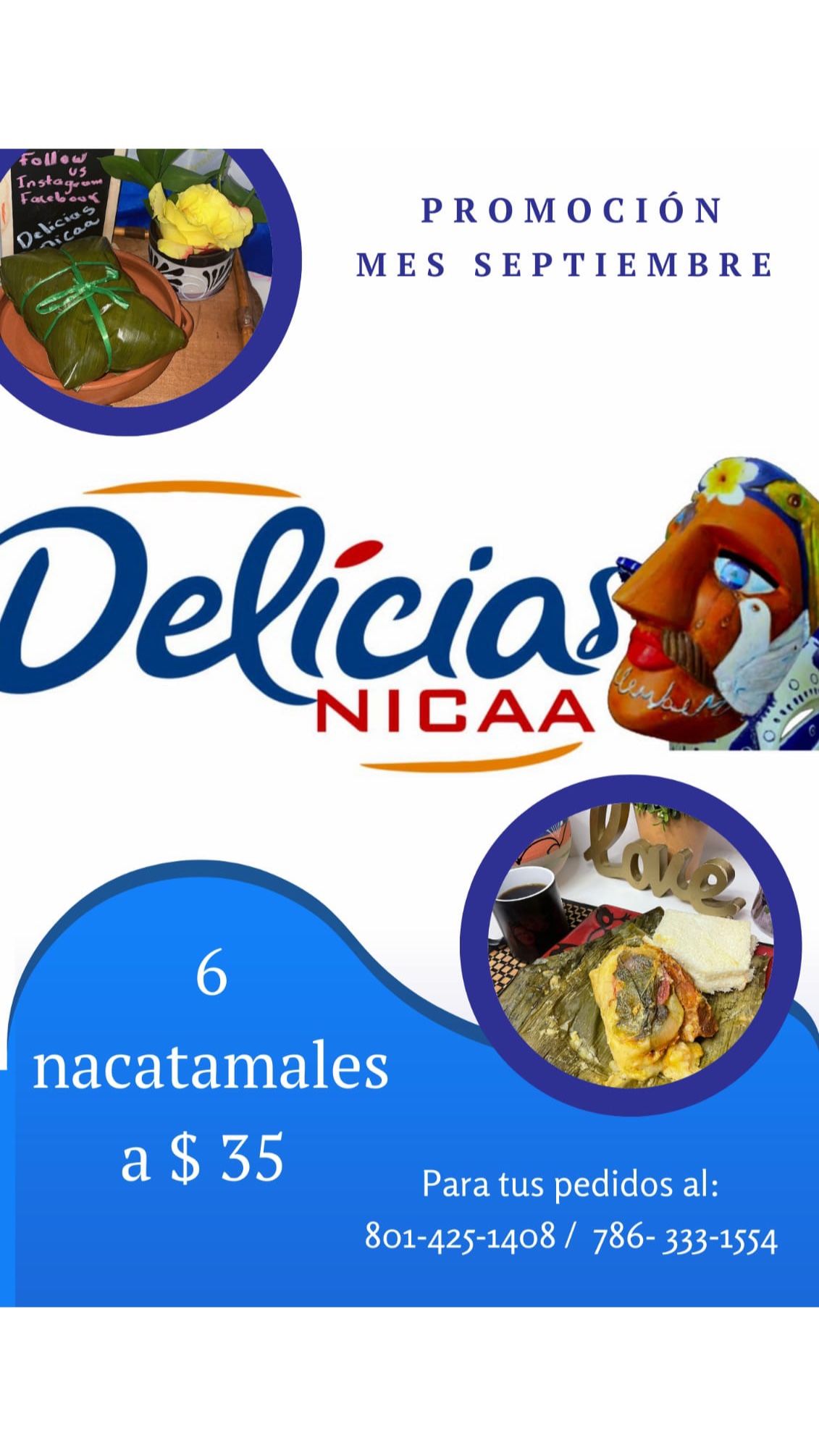 hola un gran saludos ๐๐departe de delicias nicaa les desamos que esten teniendo un execelente fin de la semana ๐ผ este fin de semana estamos abiertos de 8 am a 8 pm para delivery ๐๐๐๐viernes y sabado , domingo de 8 am a 4 pm . ๐ค๐seguimos con la promocion ๐๐ซ๐ซ๐ณ๐ฎ๐ณ๐ฎde nacatamales combo por todo el mes de septiembre 6 x35 muchas gracias por su apoyo desde ante mano ๐les deseamos un bonito y bendecido fin de semana ๐๐estamos a la orden ๐โโ๏ธ