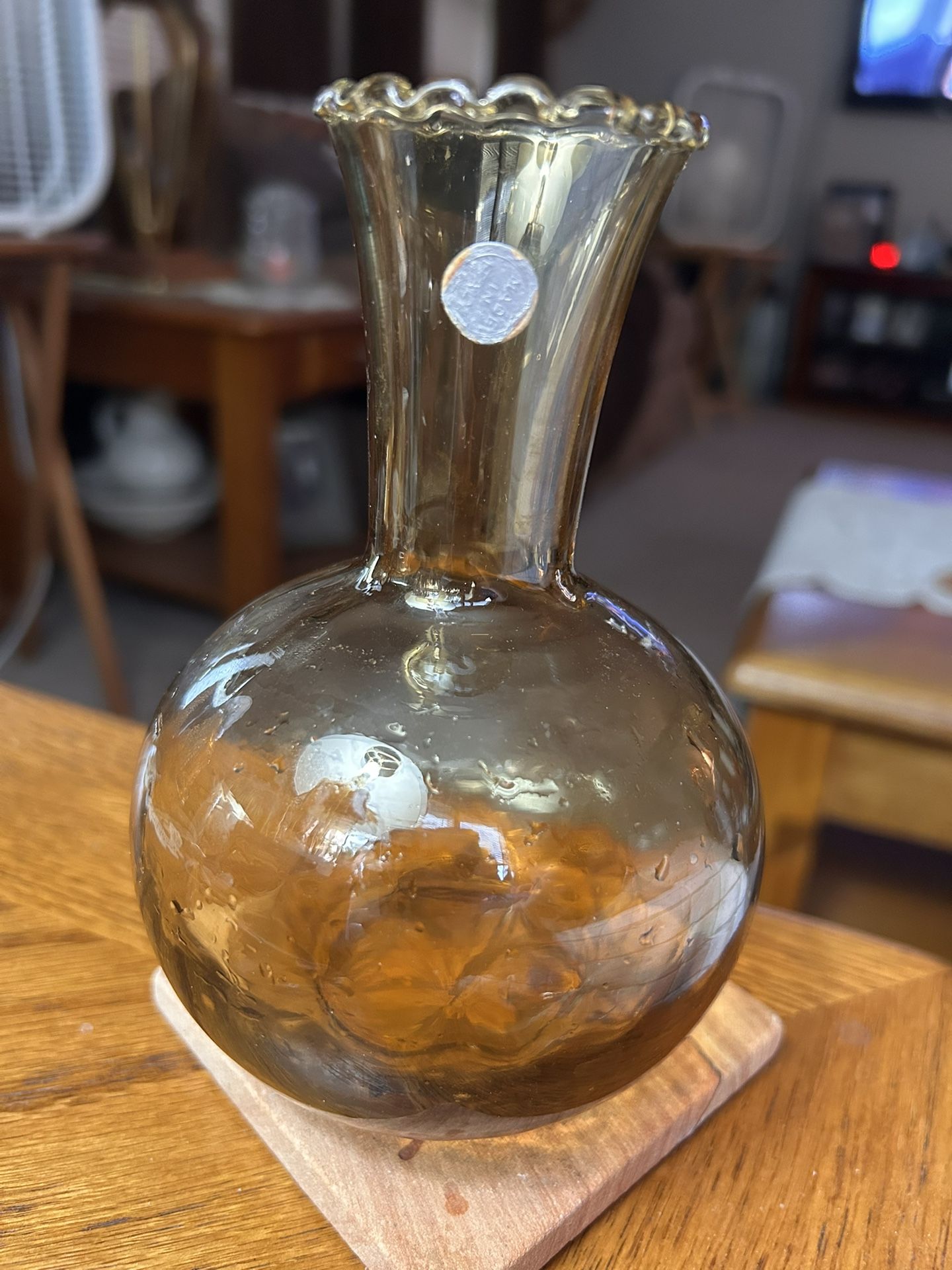 Vintage Empoli amber glass vase. 6 in. Made in Italy.