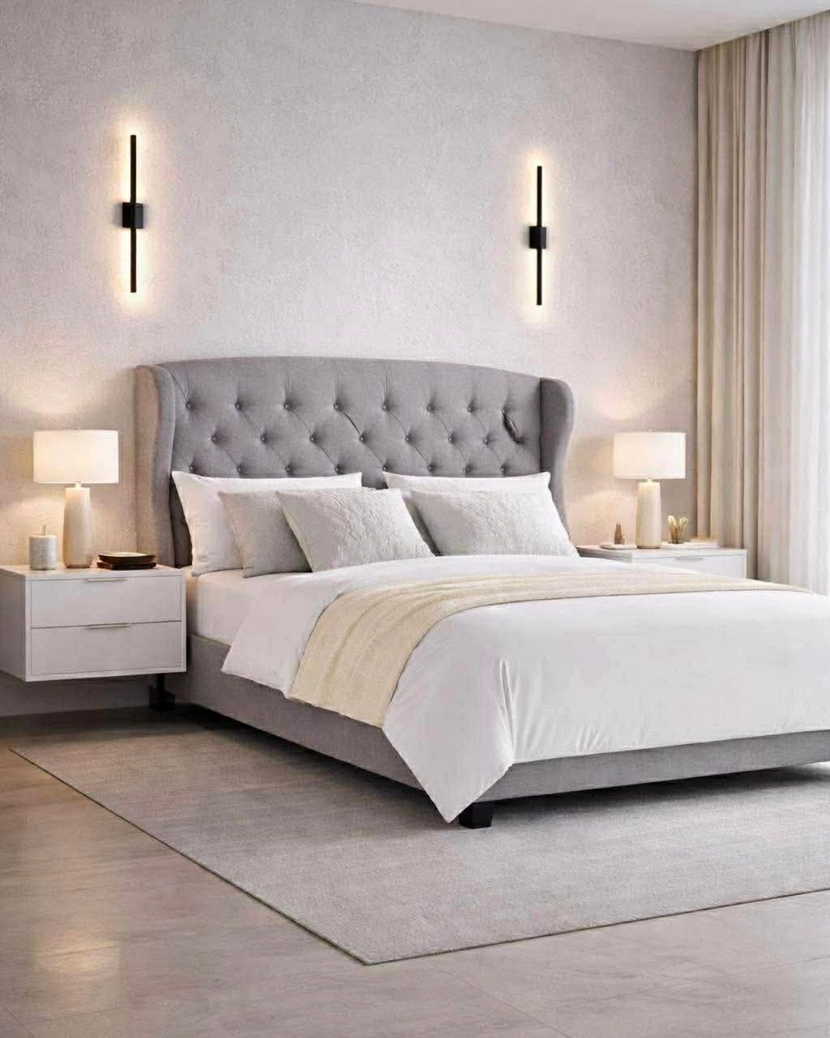 Light Gray Wood Frame High Back Upholstered Queen Platform Bed Button Tufted Bed with Soft Fabric Headboard Brand new in the box - Assembly is required Cash or Zelle only Pickup only (Santa Ana)