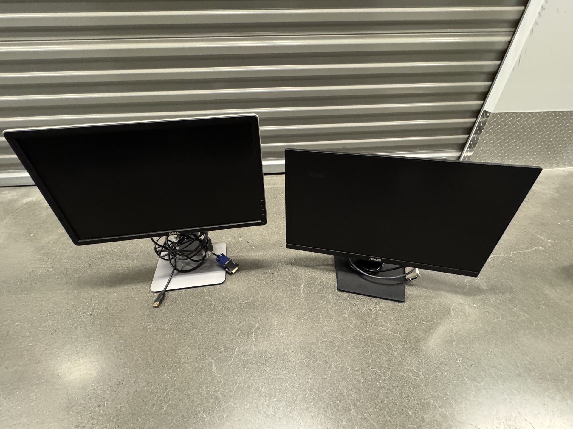 1 Asus and 1 Dell Monitor for sale. Willing to sell just one, $25 a piece. Both are slightly used and in good condition. They come with both power and connector cords.
