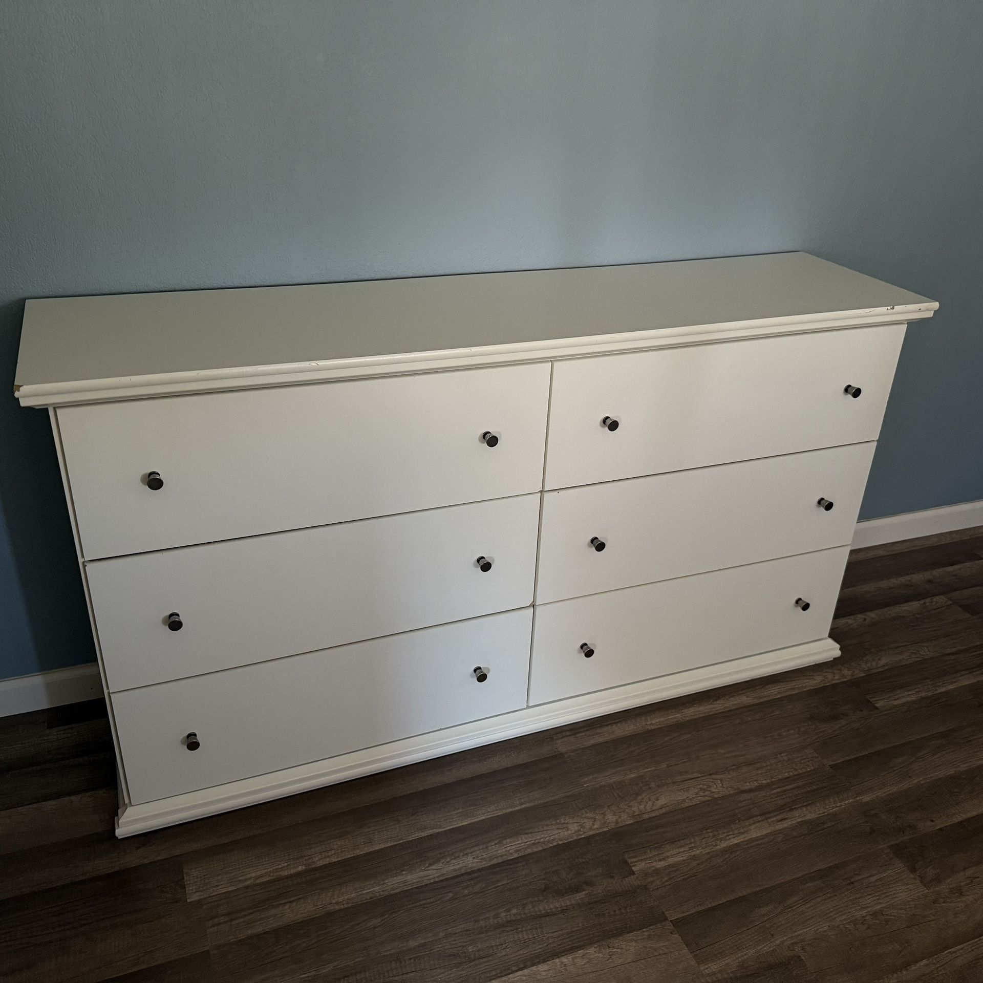 6 drawer white dresser Has a couple stretches and chips but not bad