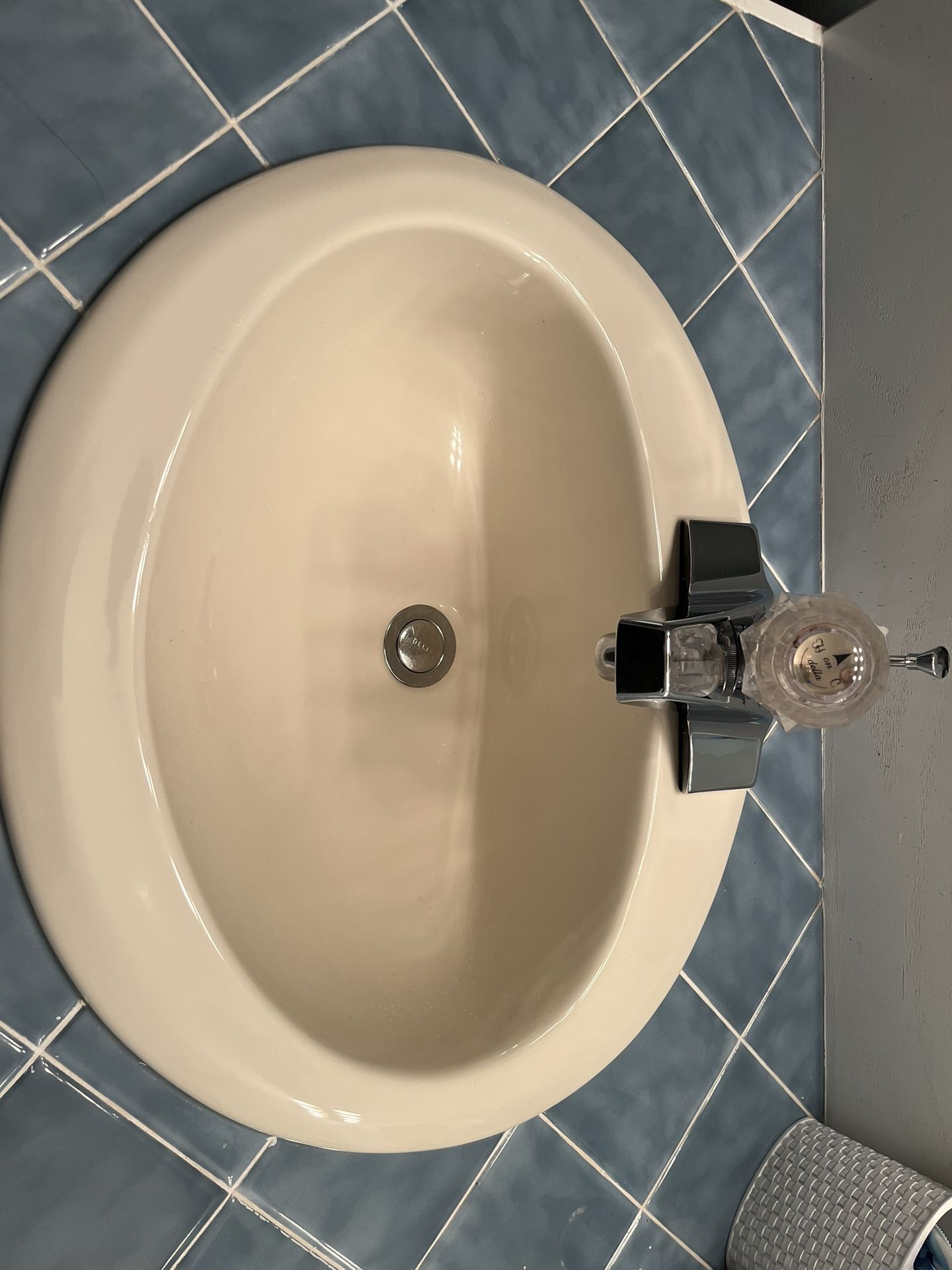 Bathroom Top Mount Almond Color Sink And Delta Faucet