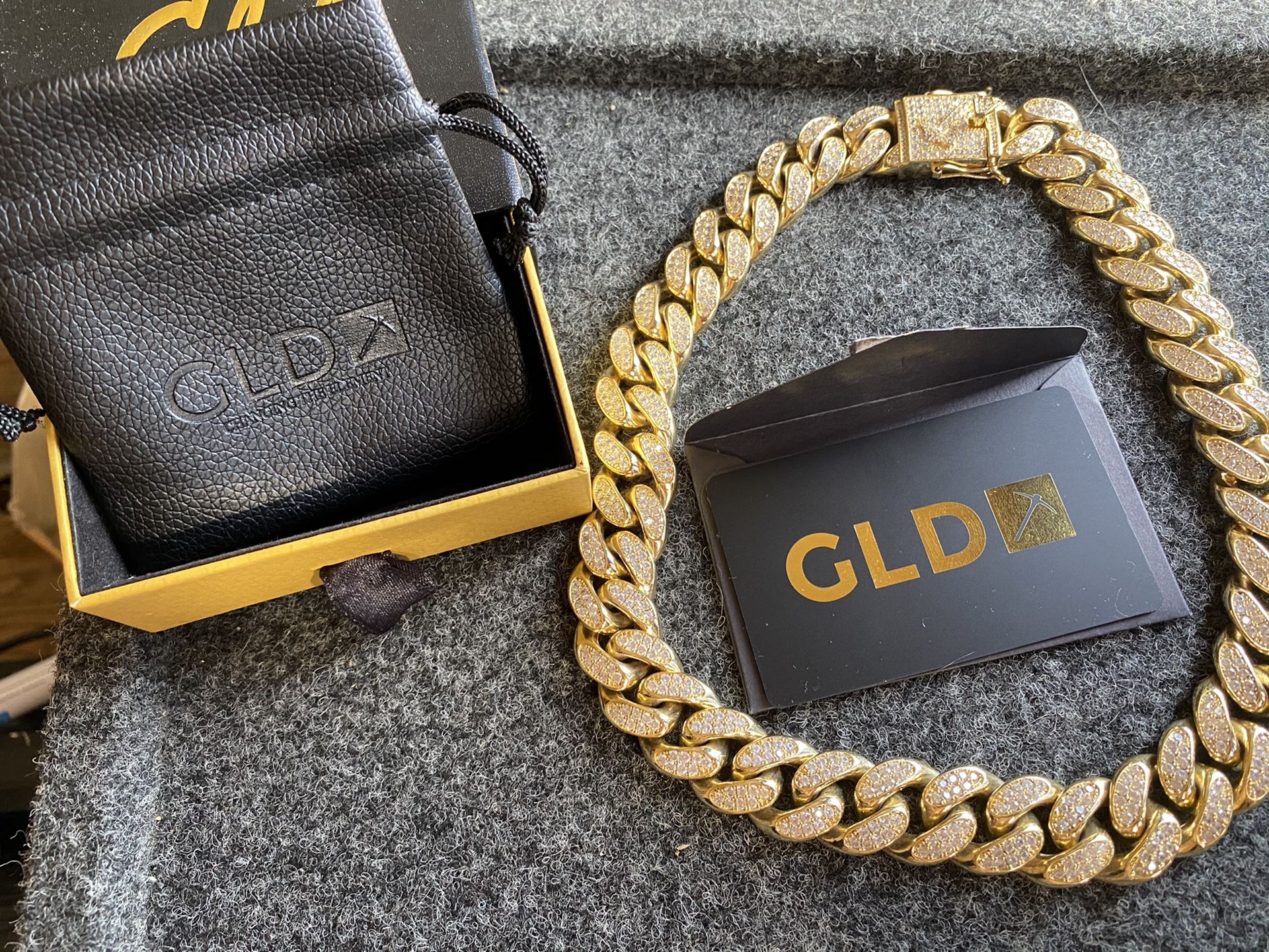 19 mm yellow gold iced out With original box and card Shines brighter In person PICK UP ONLY