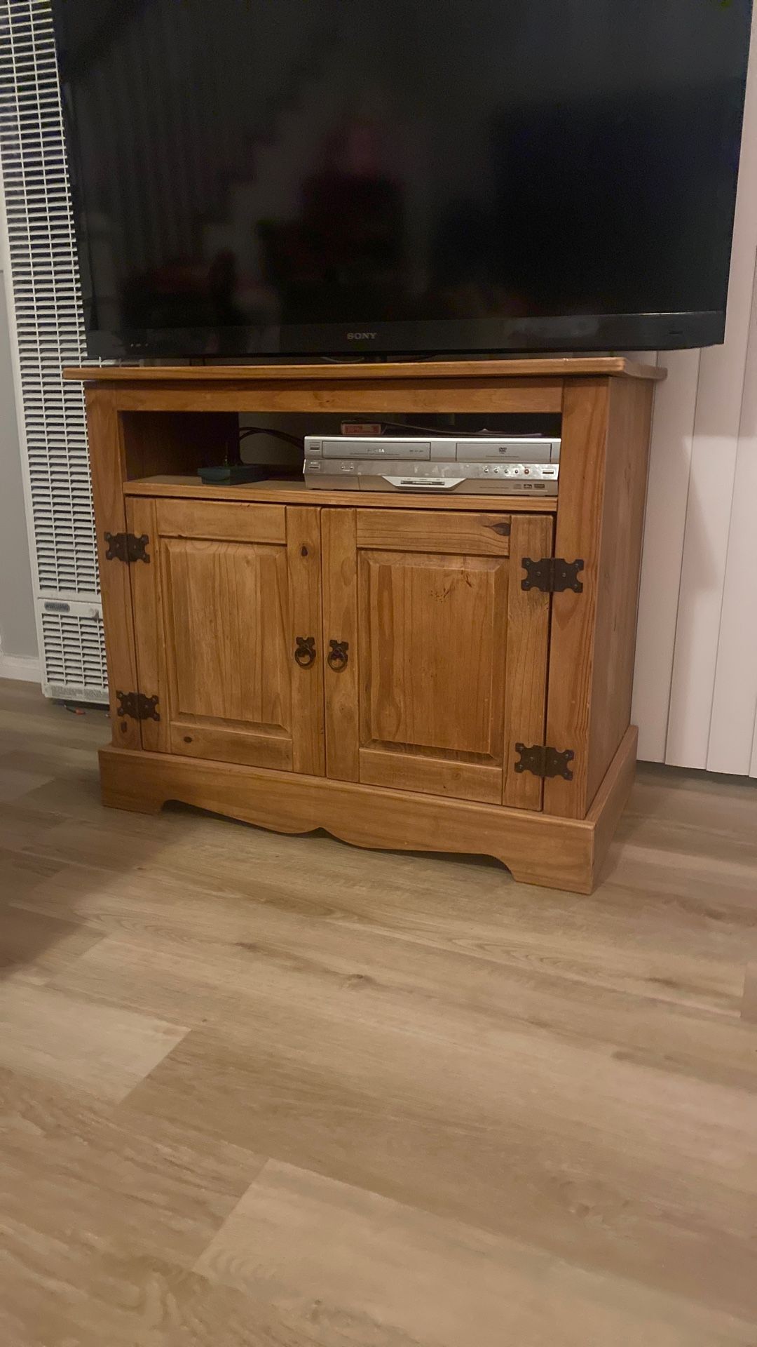 38 inches wide 21 inches deep 32.5 tall Solid wood. Good condition $40 If it’s posted it’s still available. Near Grocery Outlet on 54th check out my other offers!