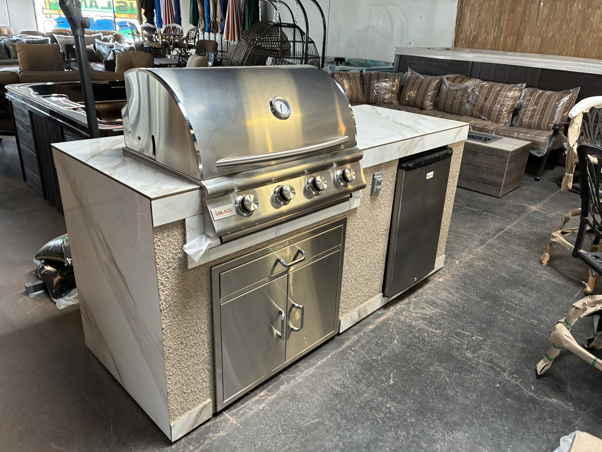 I am blowing out our floor model 7ft outdoor kitchen. It’s new and never used. Includes the 7’ Island 32” Blaze Grill Outdoor storage Fridge Regular Price: $6500 🔥 Blow Out Price: $4995 We also provide delivery at an additional charge. Message me for any details .