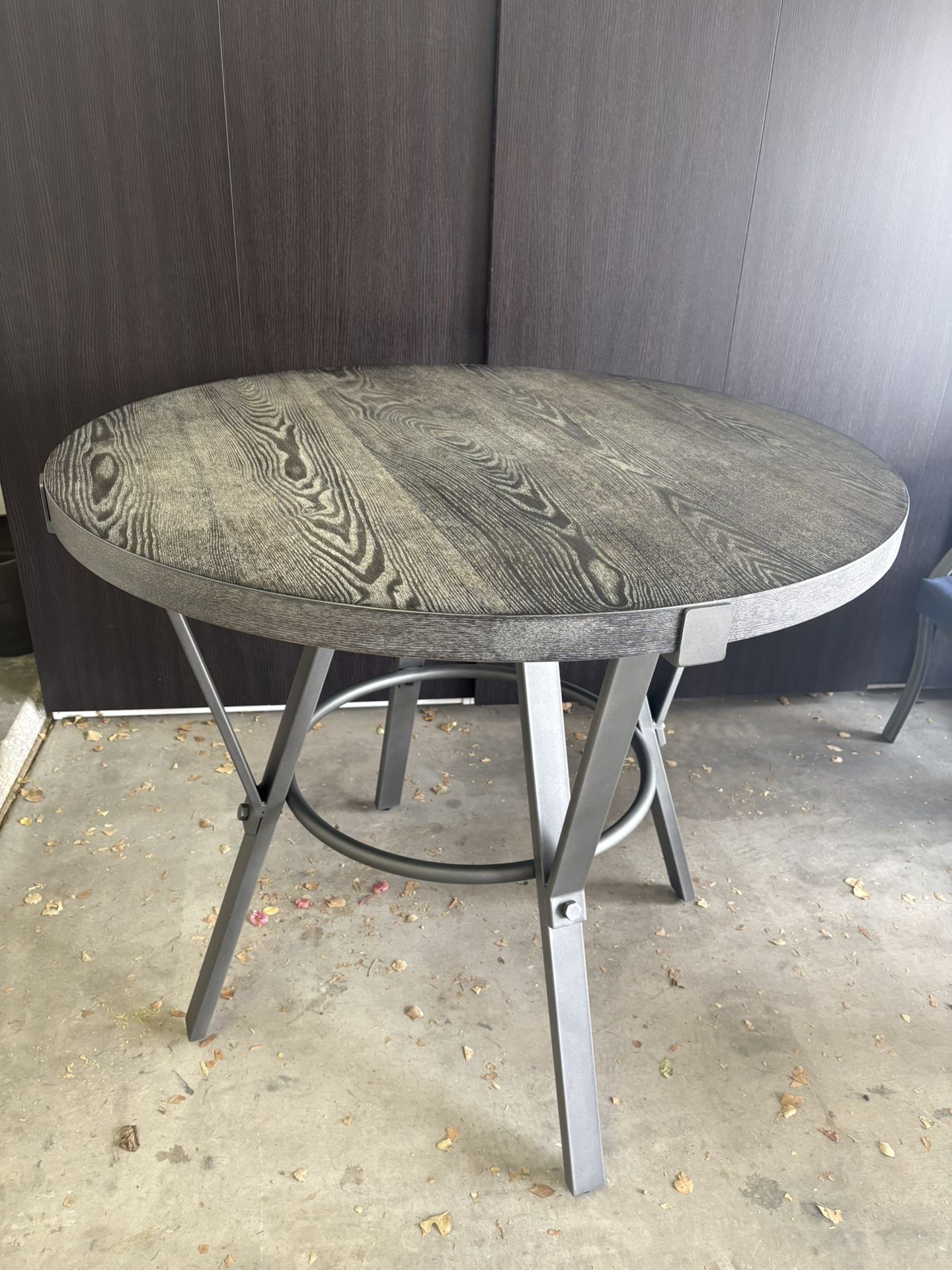 Solid, high round dining table for four. Hardly used for meals as we ended up bringing food to watch TV in the living room! Pick up Thursday 2/19 between 1-6pm