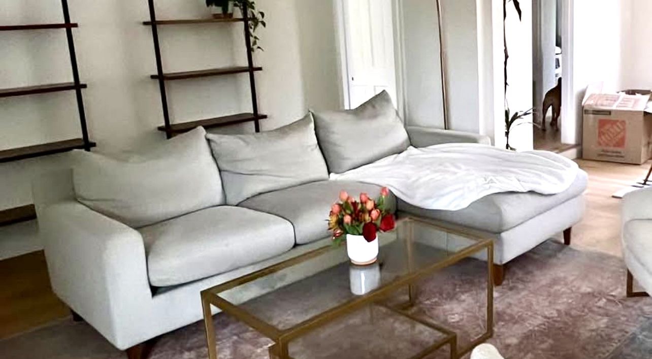 Beautiful and comfortable custom sectional from Interior Define. Only a few years old and in great condition. All cushion covers zip off and are very easy to clean. Dimensions are 96 x 64