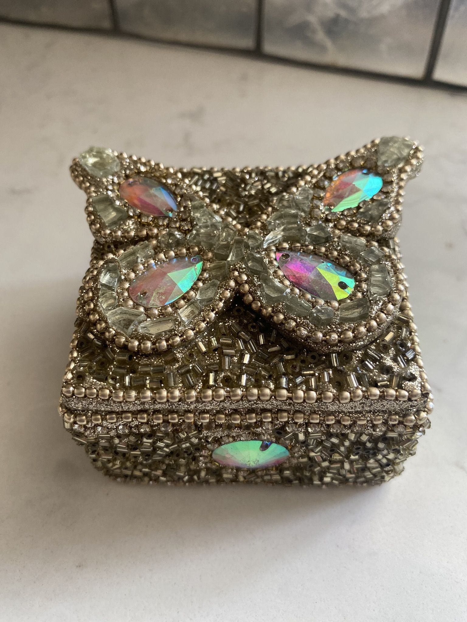Vtg Beaded Butterfly Wooden Trinket Box / Adorable and Unique - Approx 3” X 2.5”