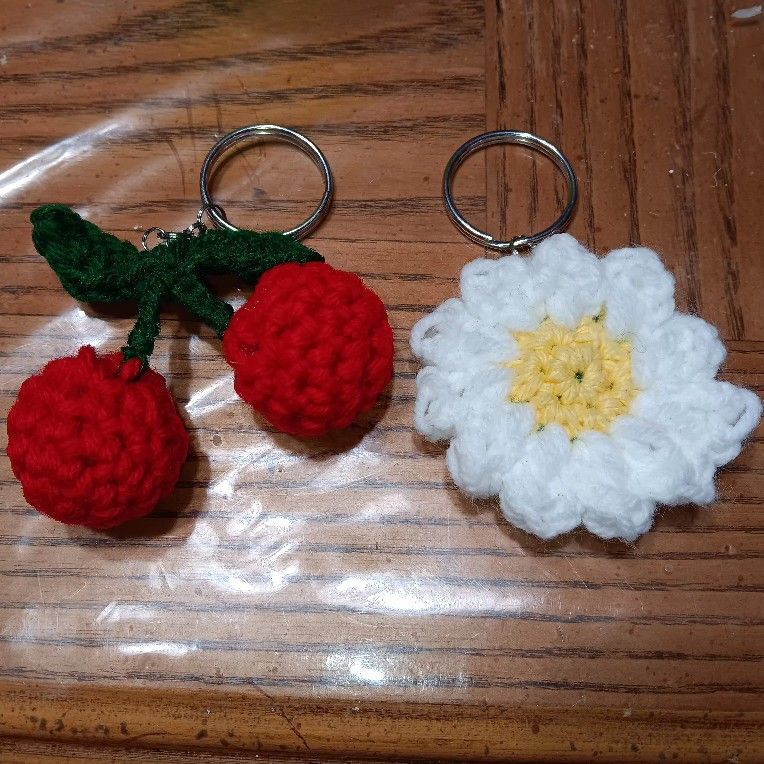 Cherry, daisy, watermelon, rose or bear crochet key chain. $5 each one