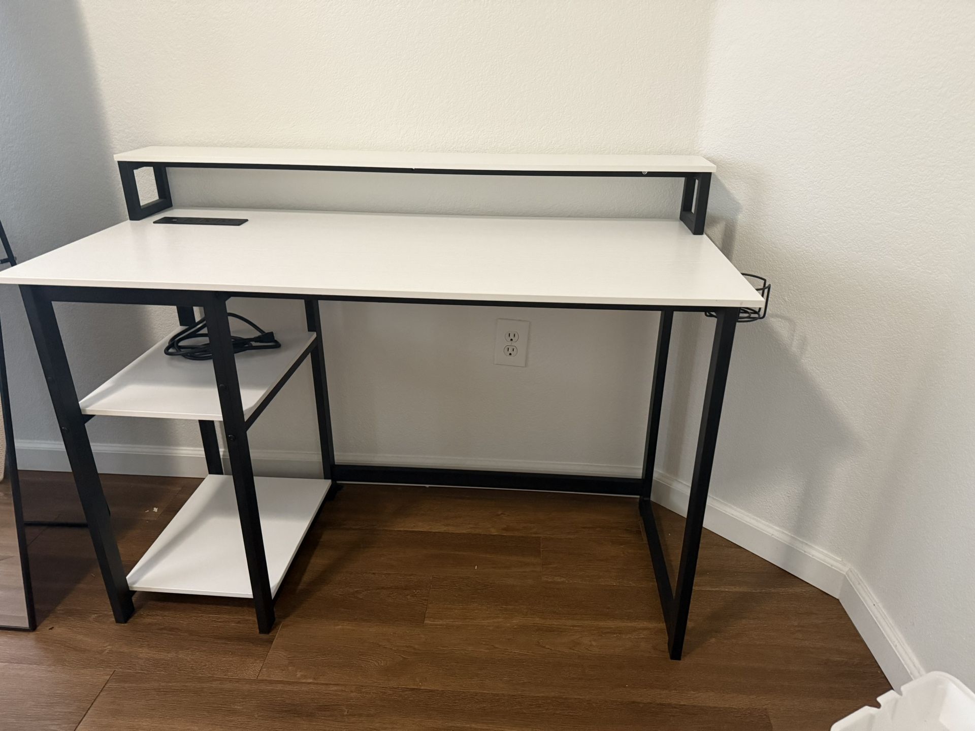 white desk with 3 outlets and 2 usb plug ins. Comes with cup holding. $80for one or $160 for both OB0