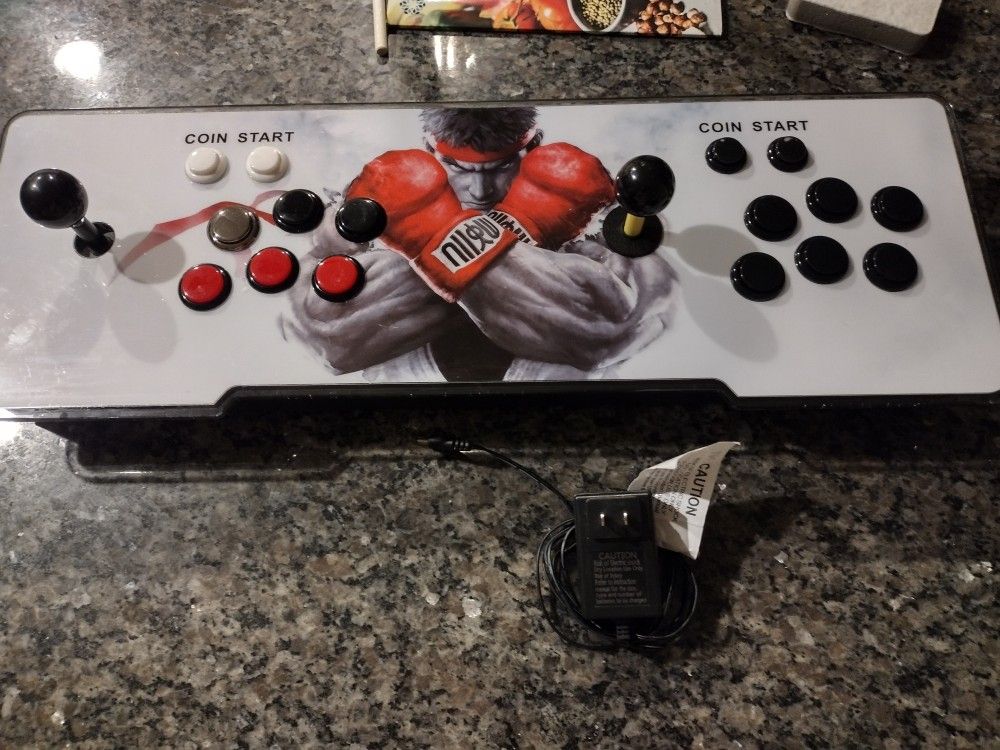 First player buttons and joysticks have been upgraded. Second Player is original comes with a adapter power supply cable Will need a HDMI cable. Working and can test at pick-up.