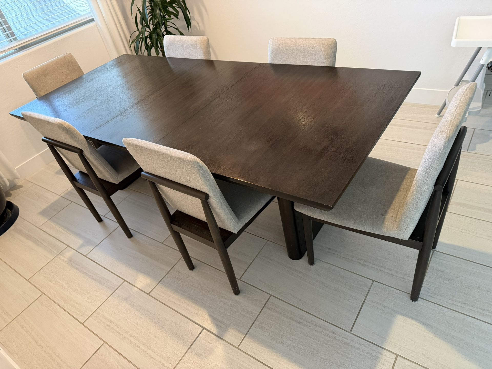 Six (6) chair dining table for sale. Dimensions: - 40” width - 90” length - 30” tall Pickup only. Being sold as is.
