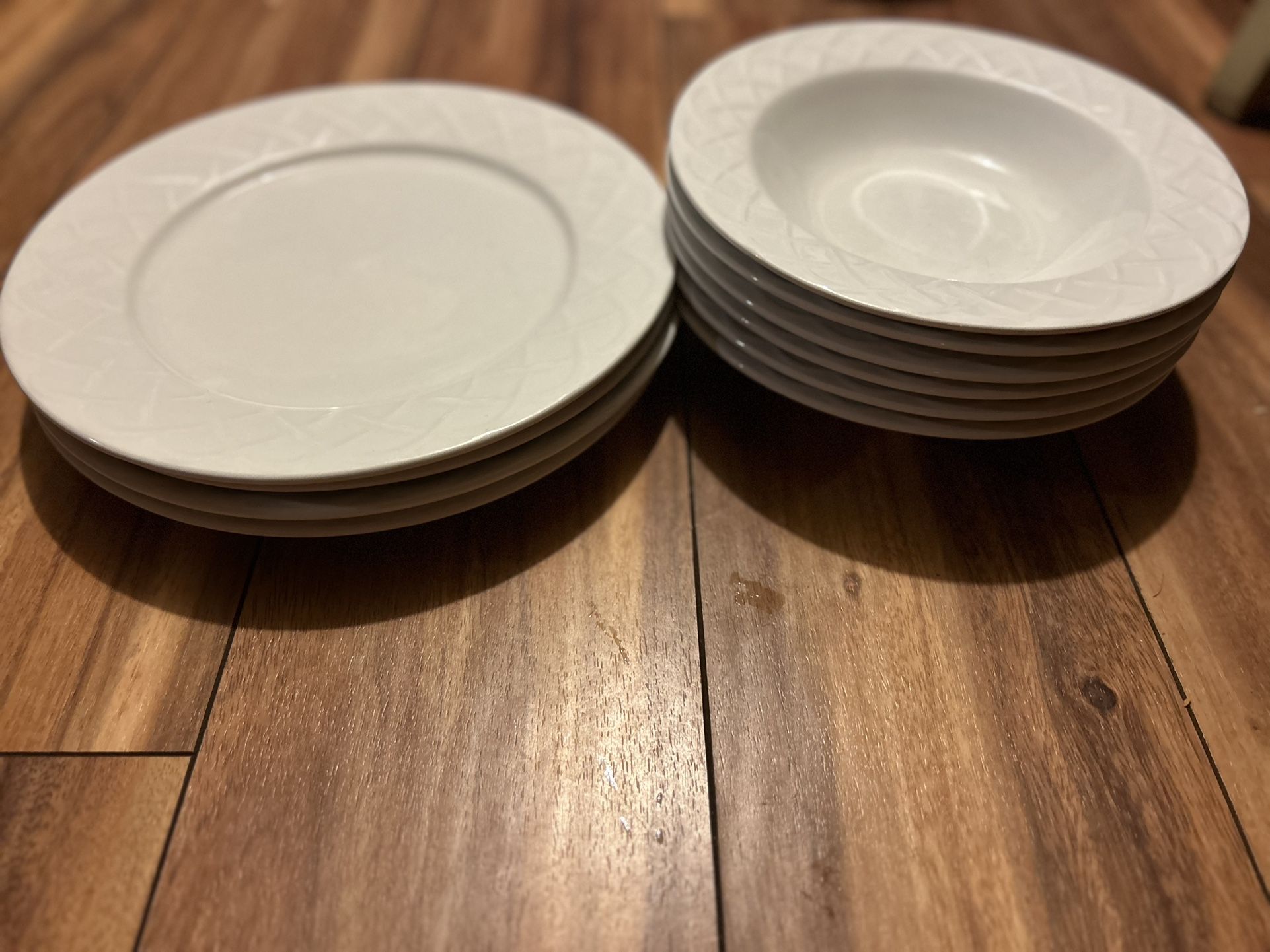 Oneida Picnic Set Embossed Lattice E Work On Rim