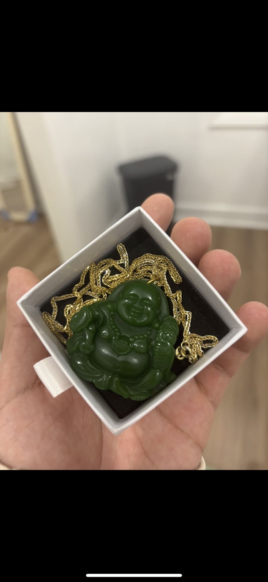 New 925 Stamped Gold Over Silver Franco Chain 24 In Long 3mm Wide Jade Buddha Pendant Asking 40$ firm