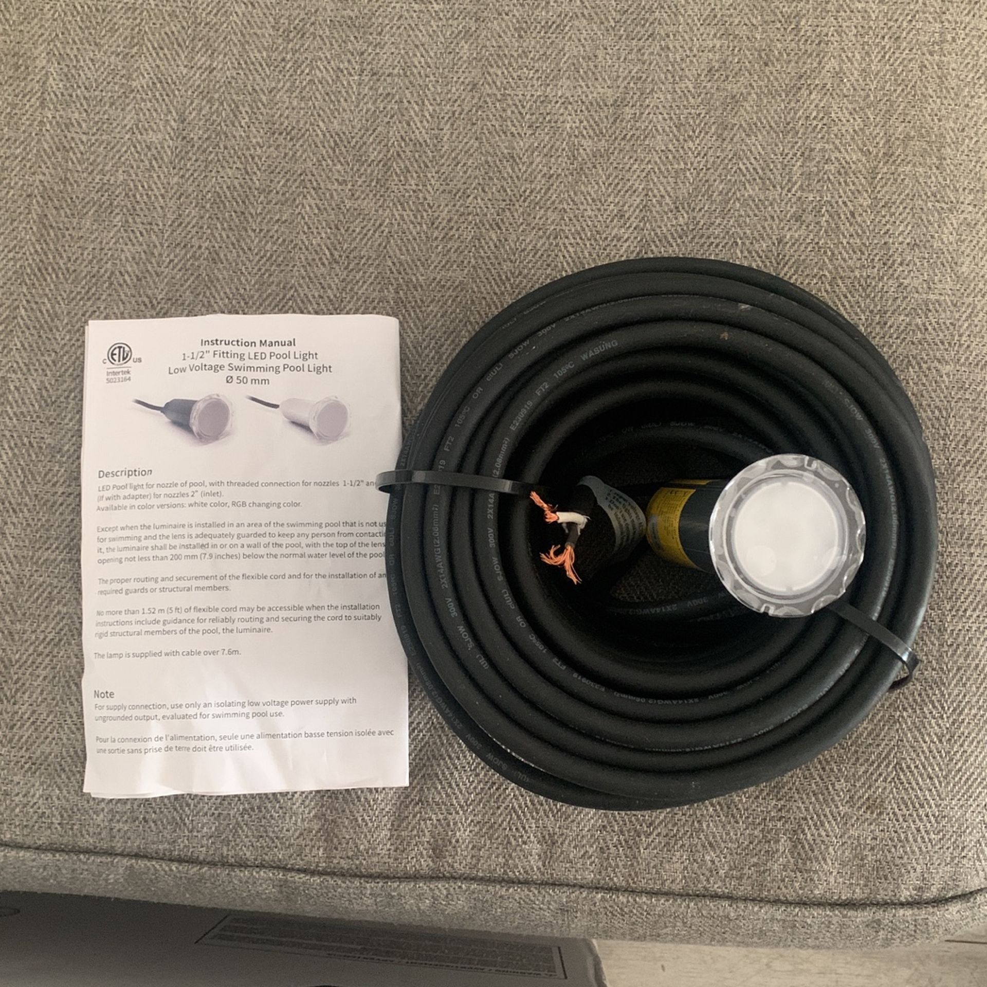 1 1/2 LED pool light color RGB with manufacturer warranty & light life 30.000 hours with 50 foot cord