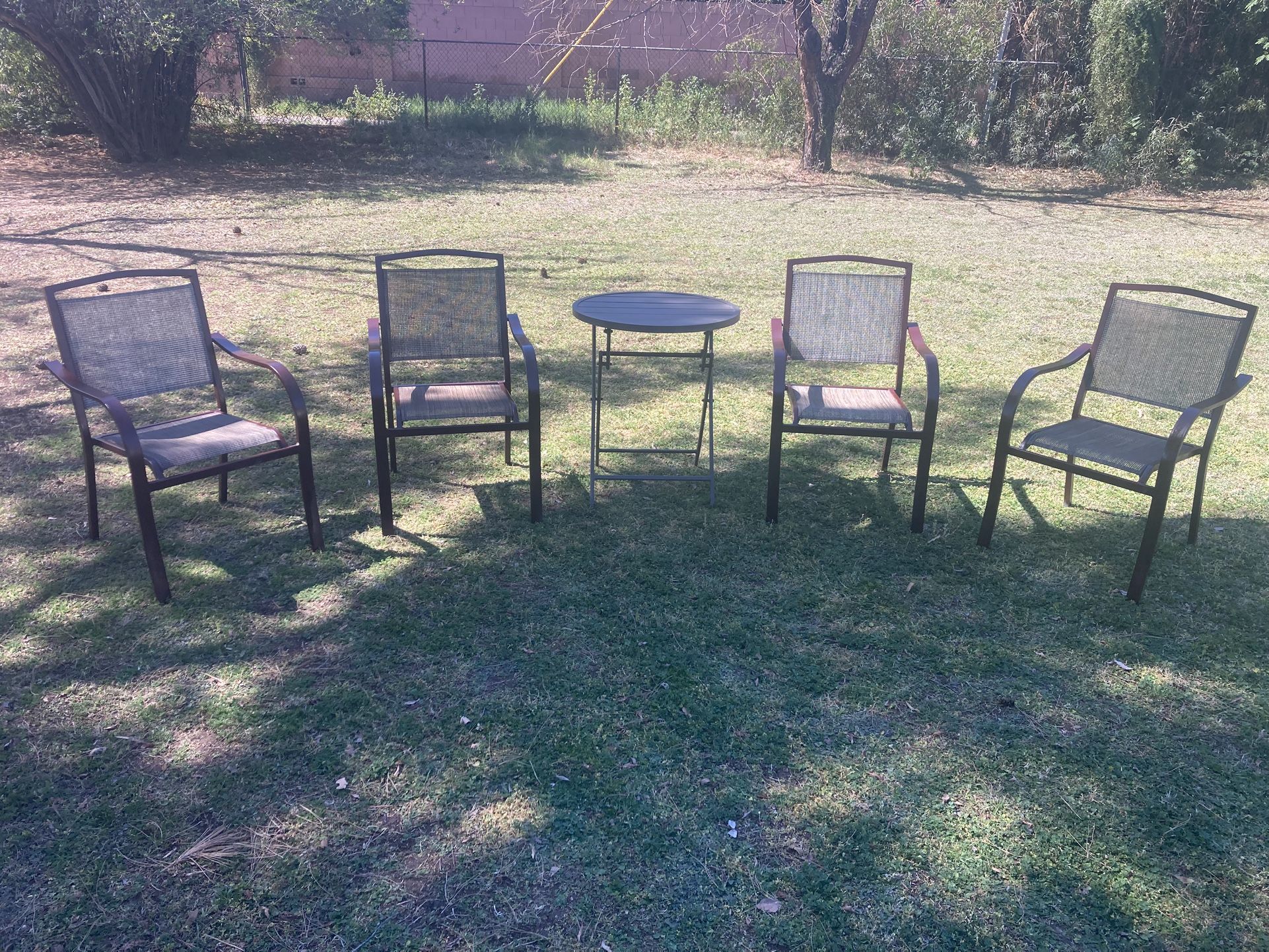 4 Chairs (stackable) No cushions needed, but you can add cushions if you want to. Foldable round center table available for extra.