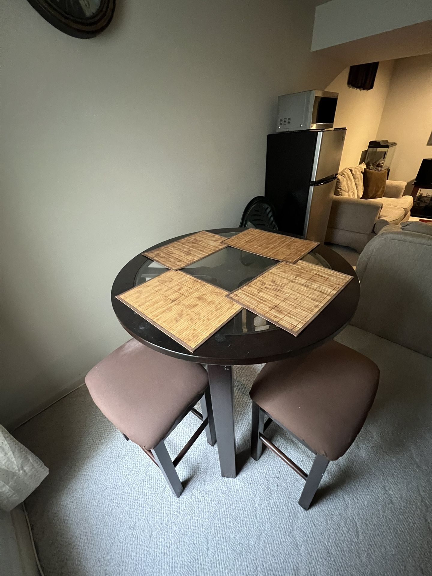 Brown chair with 4 chairs for sale ! Starting at 150 dollars or best offer ! Must go by June 21st. Condition is used but very good, 4 placemats are included in price ! Must be able to pick up from Maryland !