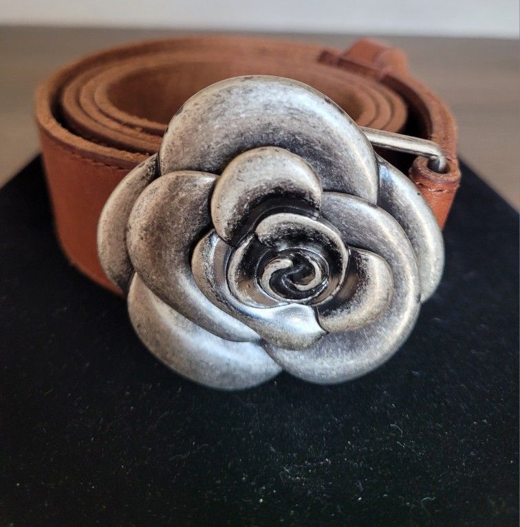 American Eagle Genuine Leather Belt W/ Silver Tone Rose Buckle Size S