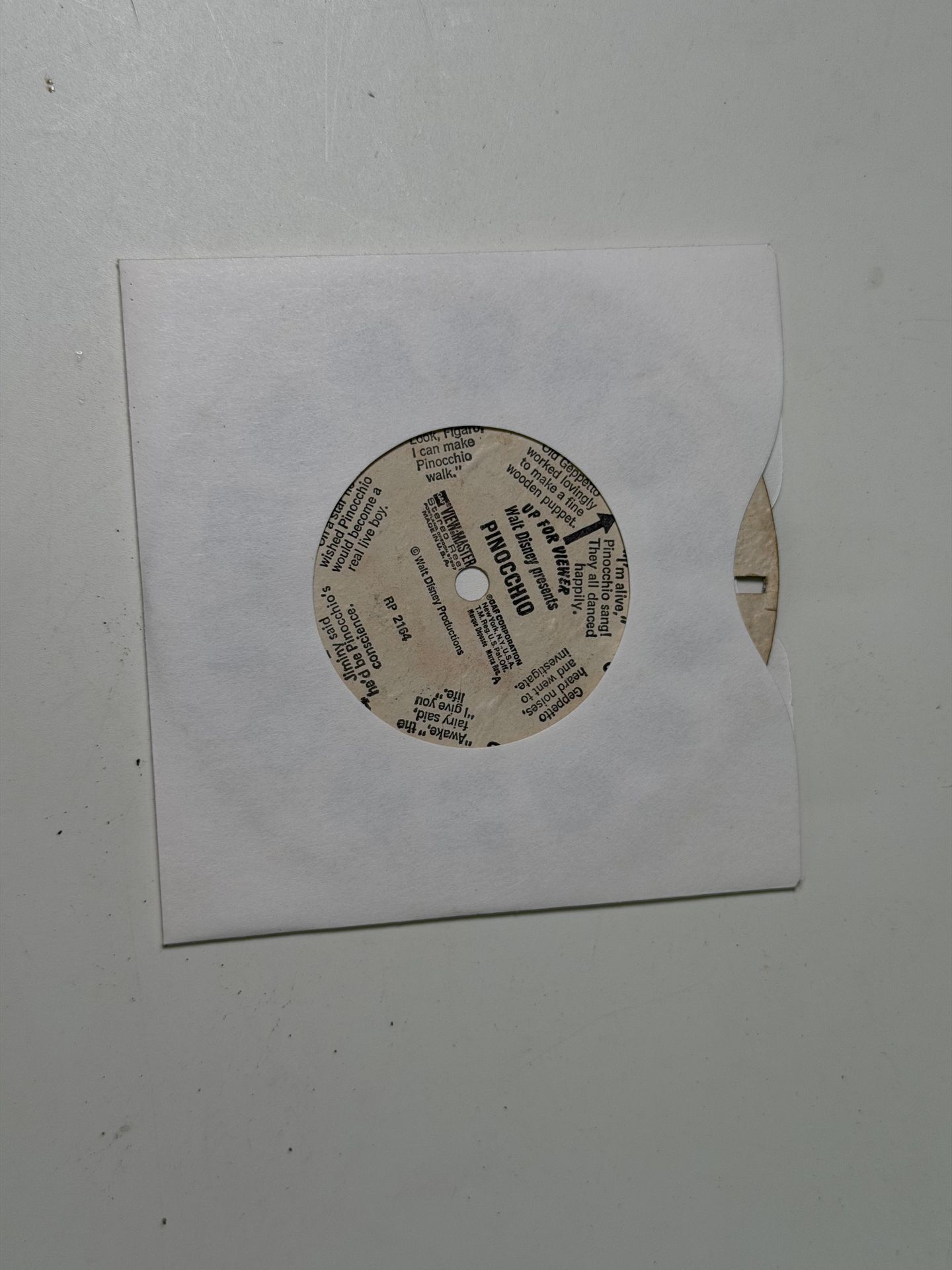 Original Walt Disney’s Pinocchio View-Master stereo reel. Single 3-D reel featuring scenes from the classic animated film. For use with standard View-Master viewer (not projector). Comes in paper sleeve. Shows normal vintage wear (see photos). Great Disney collectible or replacement reel.