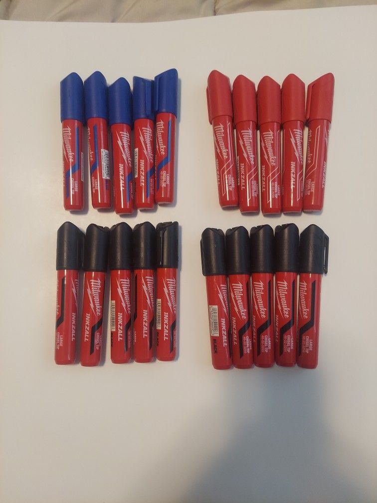 20 Milwaukee large Chisel tip markers New 10- black 5- red 5- blue asking 25 great price