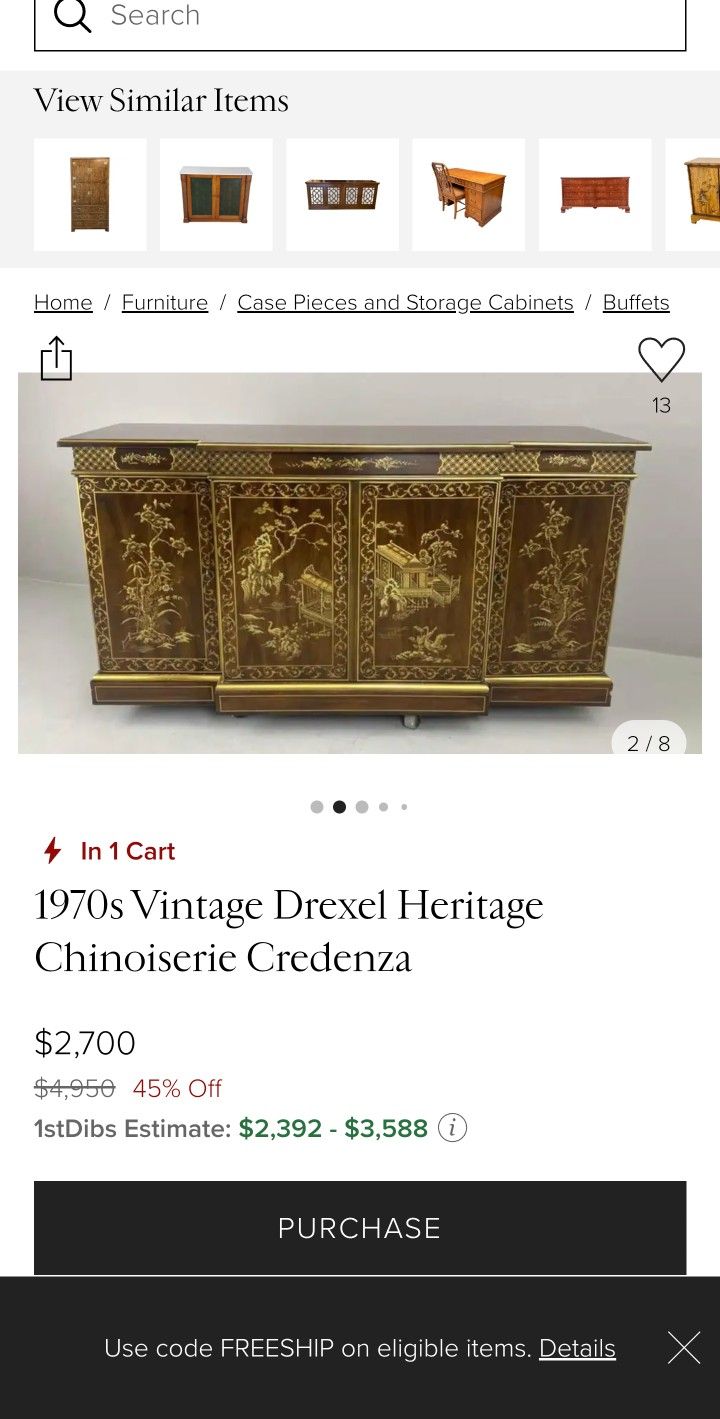 1970 vintage Drexel heritage chinoiserie credenza. Fabulous vintage hand painted Chinoiserie Credenza from Drexel Heritage. This is a rare one. Not often do you find the interior doors that have been hand painted as well. It’s also finished in a wood stain then lacquered. Most of these pieces in the collection are black lacquer. Need it gone asap. Open to offers