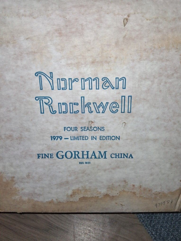 A set of four brand new plates. 1979 Limited Edition Fine Gorham China. The box is worn from time but the plates are brand new in the plastic. Comes with certification* Great for collectors or Norman Rockwell admirers