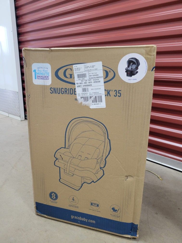Graco SnugRide SnugLock Infant Car Seat $130 New • SnugLock™ Technology: Installs in less than one minute using vehicle seat belt or LATCH • Helps protect rear-facing infants from 4-35 lb and up to 32" • Adjustable base with 4 recline positions lets you customize fit to your vehicle • Easy-to-read level indicator helps eliminate guesswork from the installation process, so you can feel confident it’s installed correctly • One-step secure attachment to Graco® car seat bases and strollers to create a travel system • Removable newborn head and body supports keep your infant feeling cradled and comfortable • Convenient compartment stores both the LATCH connectors and manual when not in use • Lightweight infant car seat for easy carrying • Rotating canopy provides shade and sun protection for your baby • 5-point, front-adjust harness helps you get baby in and out with ease