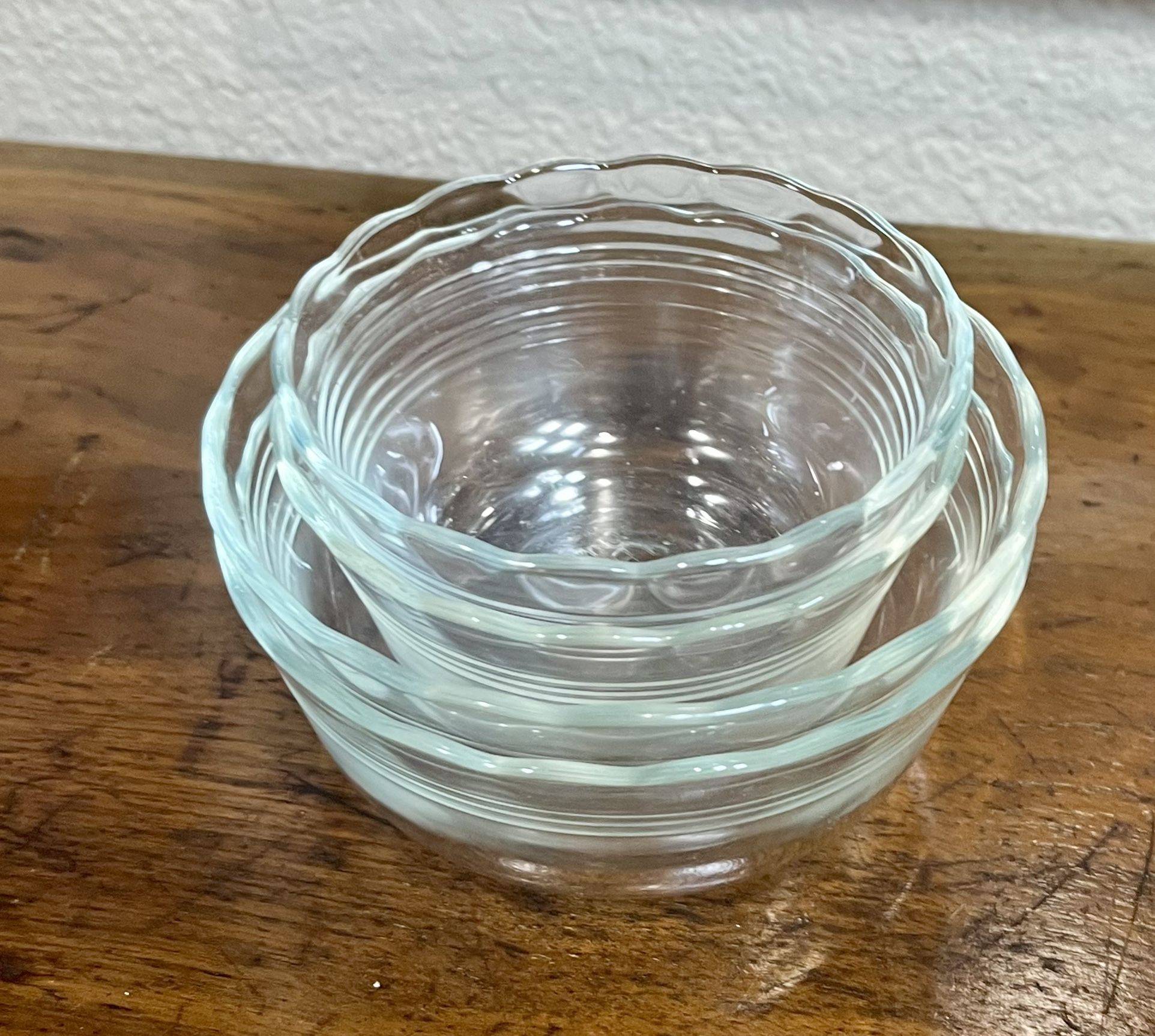 Vintage PYREX Set of 4 2 #463 2 #464 Custard Dessert Scalloped Bowls USA Made!